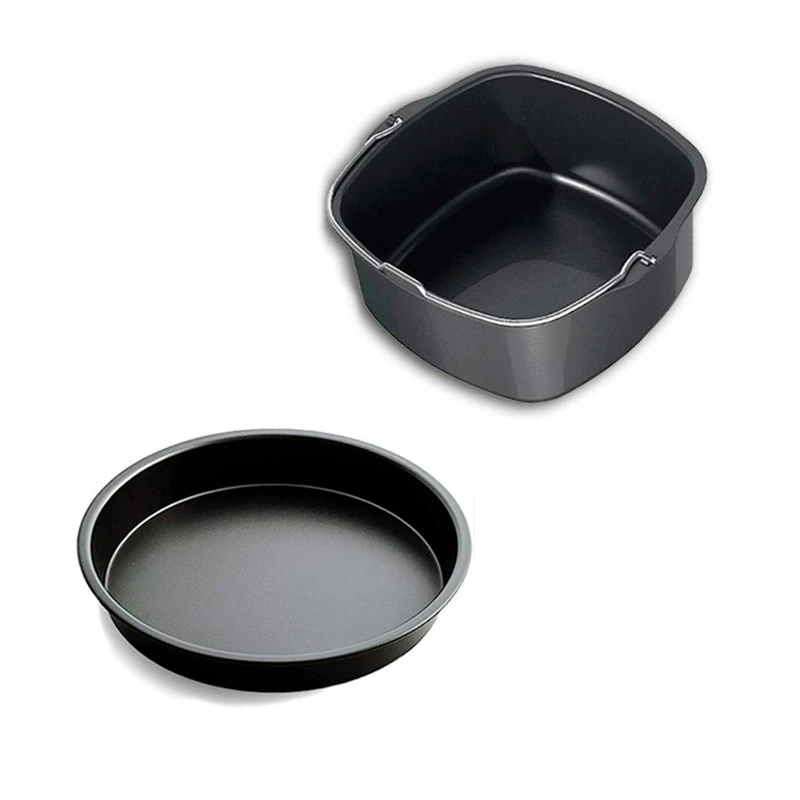 Бочонок для торта и сковорода для пиццы с использованием высококачественных материалов, есть защитный слой (с антипригарным покрытием) на поверхности аксессуаров фритюрницы, don,t использовать Твердые вещи, чтобы натереть, В вашем торте нет черной краски.