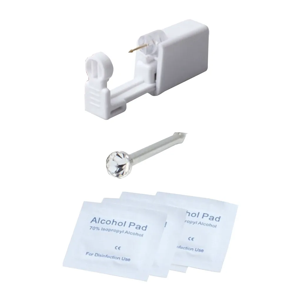 1 PCS Piercer +1 PCS Nose stud +6Pcs Alcohol Pad Ear Nose Piercing Tools Kit