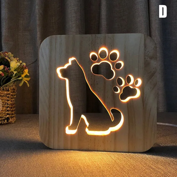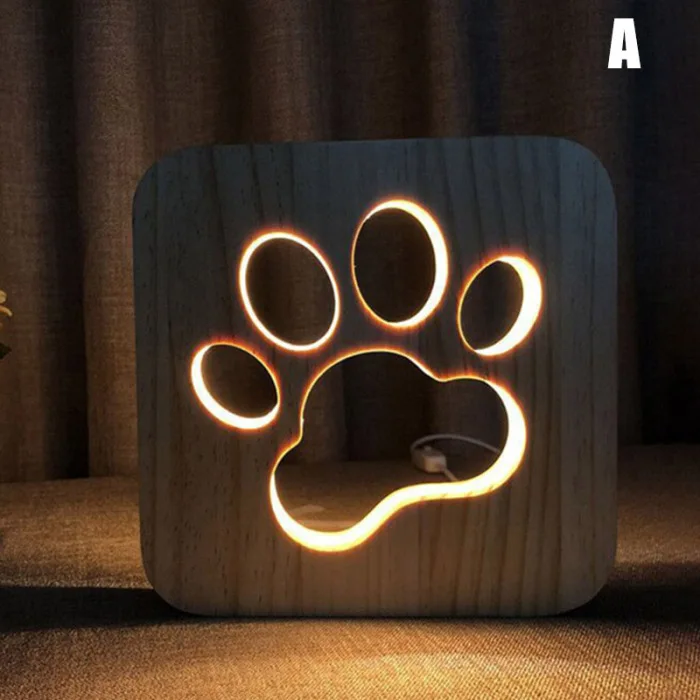Экономичный светодиодный светильник в форме собачьей лапы с резьбой по дереву, полый Настольный светильник для спальни, ночной Светильник ds99