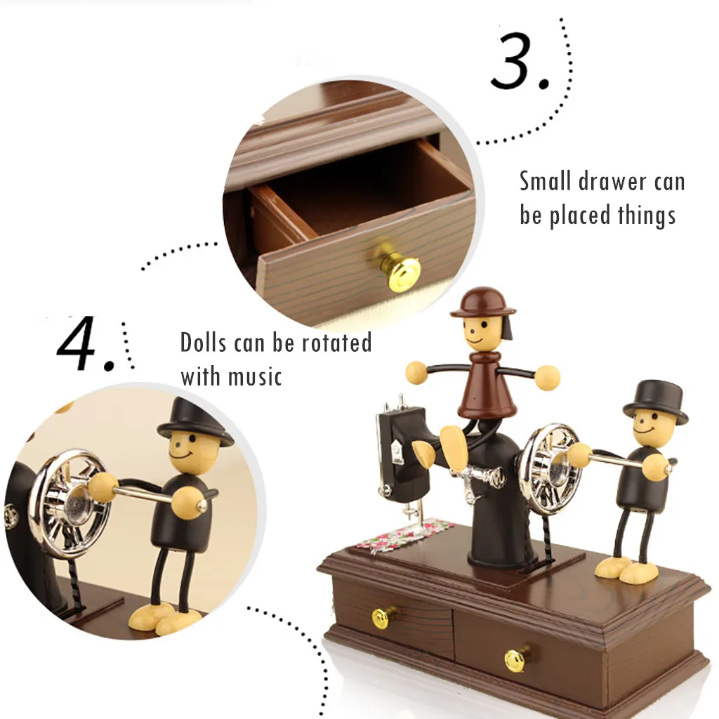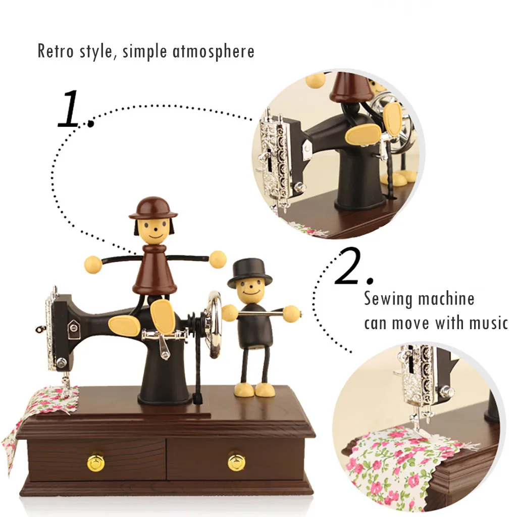 Швейная машина музыкальная шкатулка Ретро Механический подарок на день рождения Настольный Декор