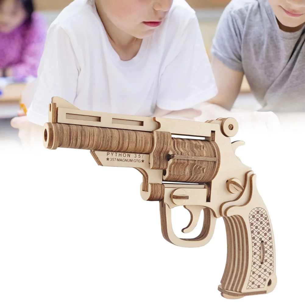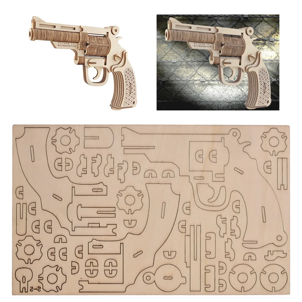 Бесплатная доставка DIY револьвер Submachine Gun Модель 3d Трехмерная деревянная головоломка игрушечный пистолет для детский Набор для творчества ручная работа деревянные игрушки