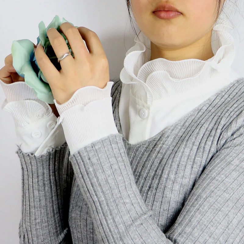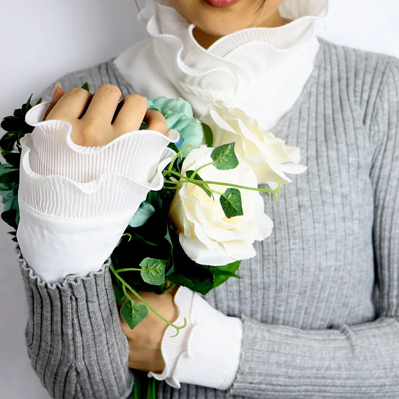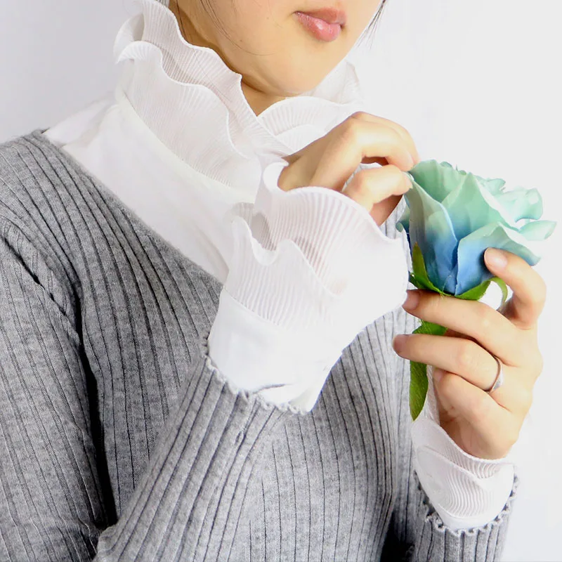 Милый съемный фальшивый воротник с манжетами, набор наручных манжетов с высокой оборкой, украшение одежды, рубашка с фальшивым воротником 2020