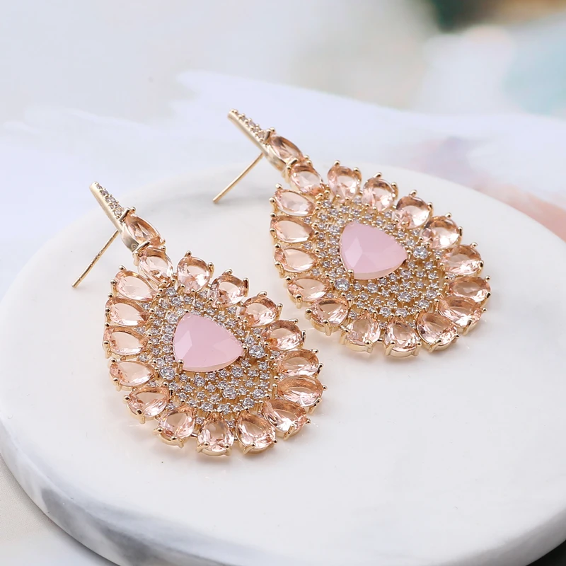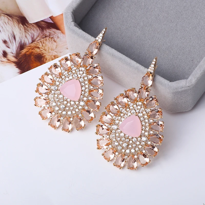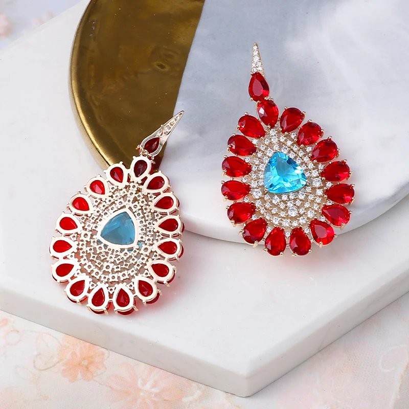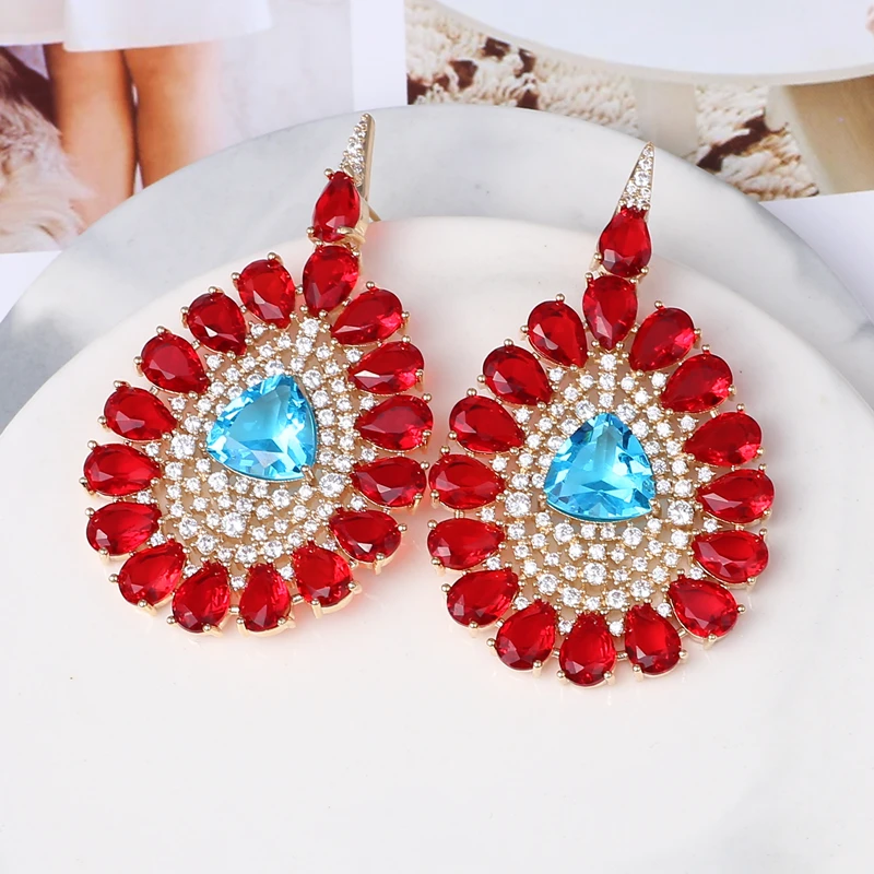 Очень женские большие геометрические циркониевые/Кристальные серьги, женские красочные каплевидные вечерние свадебные ювелирные изделия, Висячие Серьги Brincos