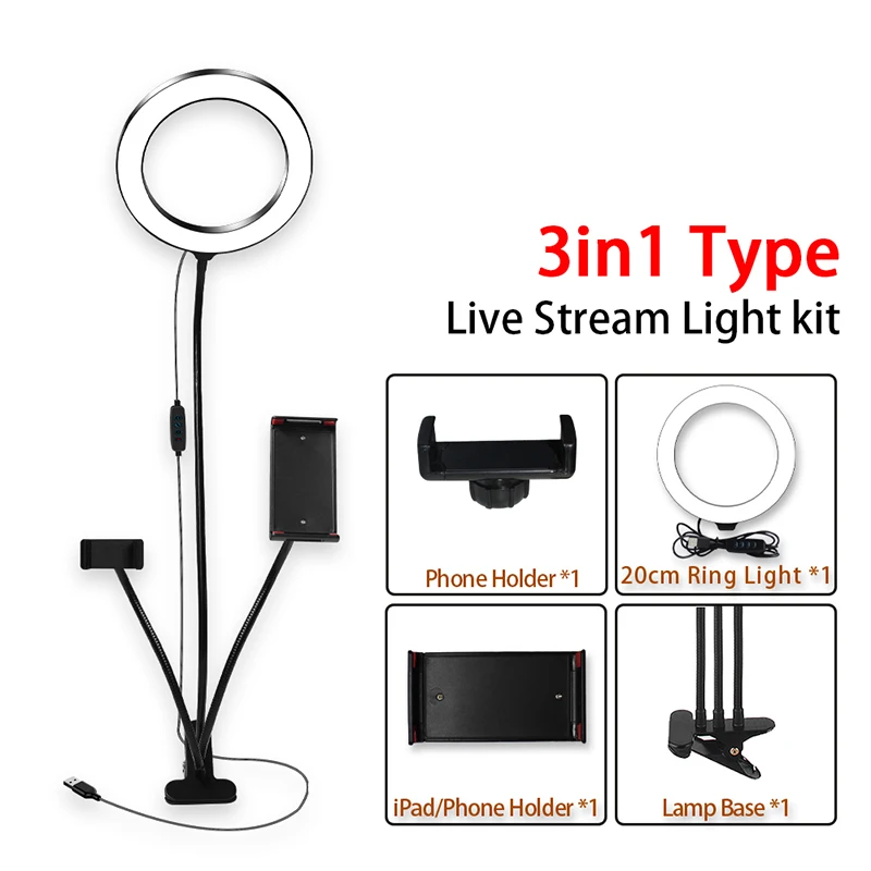 Фотостудия селфи светодиодная кольцевая лампа 20 см с держателем для телефона для Youtube видео Live Makeup настольная кольцевая лампа для iPhone Android
