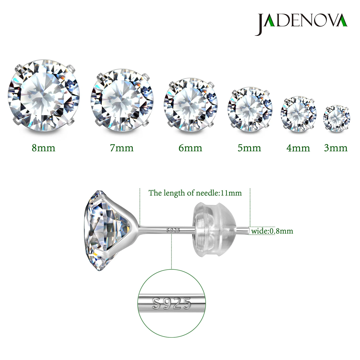 Премиум качество: изготовлено из высококачественного и аутентичного серебра 925 пробы (драгоценные металлы), долговечно и гипоаллергенно, безопасно для вашей чувствительной кожи. Также он обладает высокой устойчивостью к ржавчине, коррозии, потускнению и требует минимального обслуживания. Шпильки для сережек с фианитами JADENOVA имеют маркировку "S925", пожалуйста, будьте уверены в покупке. Чтобы сохранить лучшее качество, пожалуйста, чистите и регулярно Носите, чтобы предотвратить и помочь сохранить его сияемость. Размер, количество и цвет: есть 6 размеров, с фианитом диаметром 3 мм, 4 мм, 5 мм, 6 мм, 7 мм, 8 мм, 1 пара для каждого размера с белым фианитом и 925 серебряной булавкой. CZ Шпильки включают в себя различные размеры, вы можете выбрать тот, который вам подходит. Кроме того, он идеально подходит для тех, у кого есть несколько пирсингов, вы можете носить более одного размера/комплект за раз. Они идеально подходят для мочки уха, хряща, пирсинга трагуса. Упаковка: набор серег из Кубического циркония упакован в многоразовую коробку и сумку, что позволяет сохранить серьги из серебра 925 пробы в прекрасном состоянии и избежать сгибания и повреждения при транспортировке или хранении. В том числе с анти-тарисовой бумагой и тканью для полировки серебра, они могут помочь держать сережки назад является лучшей производительностью. CZ серьги являются идеальными аксессуарами для вас, чтобы показать свой особый вкус и индивидуальность. Высокое качество изготовления: серьги с фианитами изготовлены из полированной гладкой поверхности, они не поцарапают ваше ухо и удобно носить, идеально подходят как для мочки уха, хряща, спирали и пирсинга трагуса. Кроме того, с элегантным дизайном, он добавит изысканности и очарования Вашему образу. Идеальный выбор подарка: гипоаллергенные серьги-гвоздики-идеальный выбор подарка на Рождество, юбилей, День Святого Валентина, День матери, День отца и день рождения для вашего любимого человека. Подходит для женщин и мужчин, отлично сочетается с повседневной одеждой или формальными нарядами, чтобы предложить идеальный аксессуар для повседневной носки.