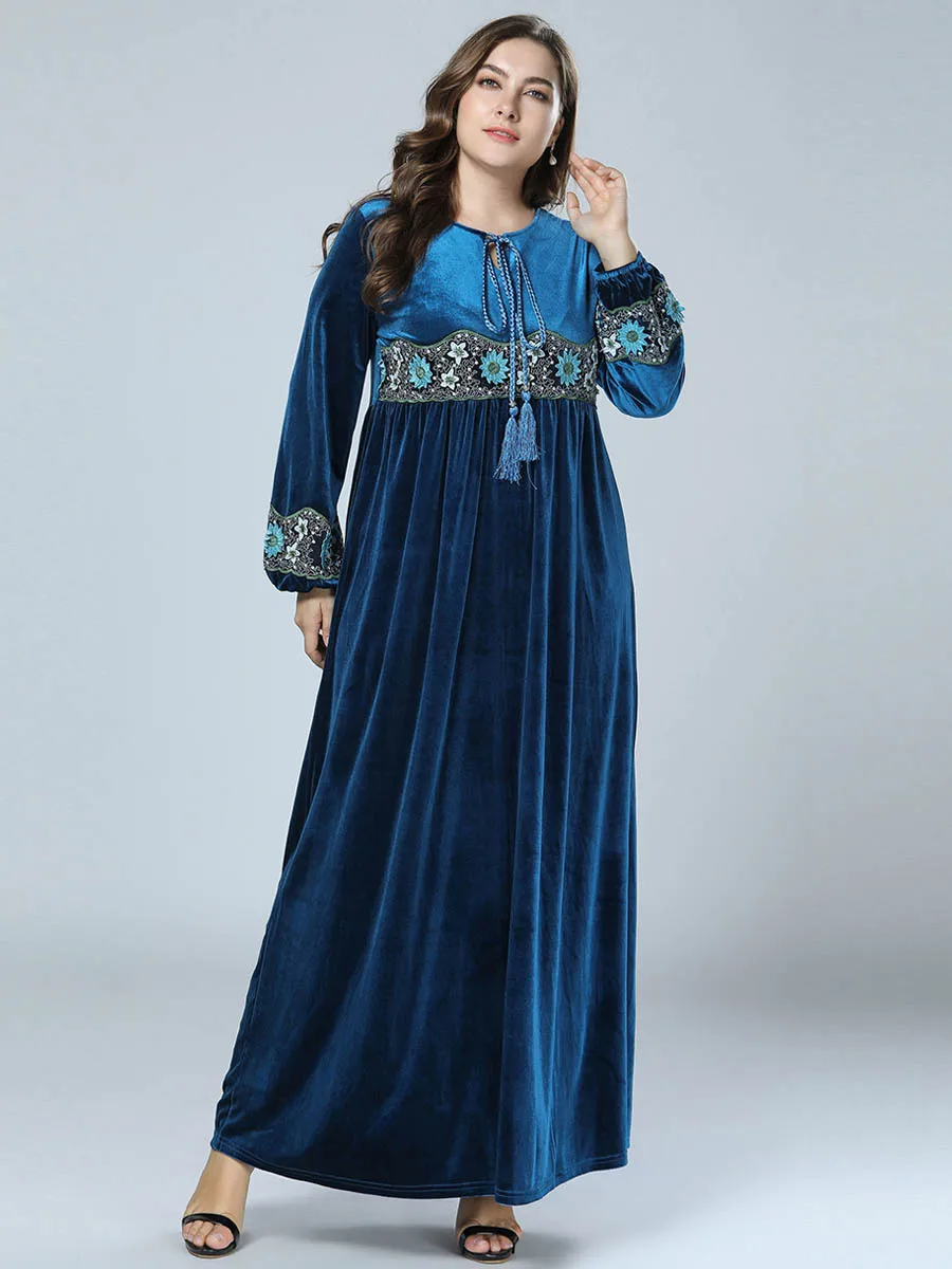 Женское мусульманское платье с цветочным принтом и длинным рукавом вечернее
