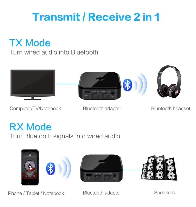 TX16 Bluetooth 5 0 HD аудио передатчик приемник поддерживает 3 мм AUX SPDIF цифровой для ПК ТВ