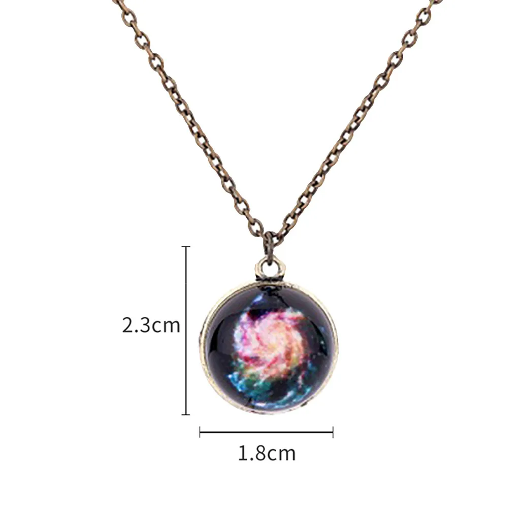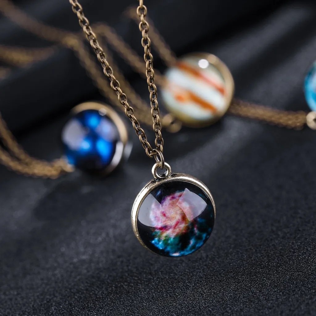Светится в темноте система галактики двусторонний стеклянный купол планета ожерелье кулон