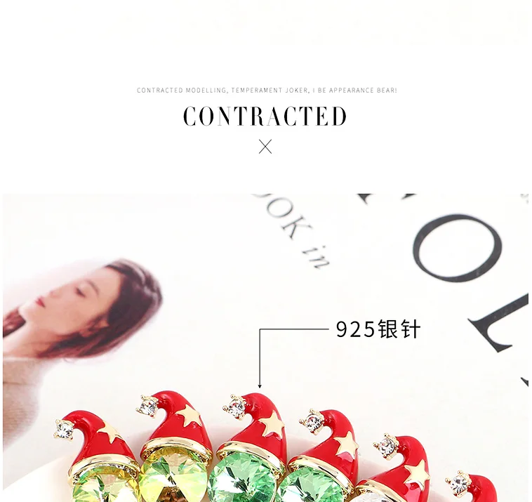 Женские рождественские серьги-гвоздики с кристаллами Swarovski, романтические серьги-гвоздики с шляпой, рождественские подарки для девочек, новинка 2019