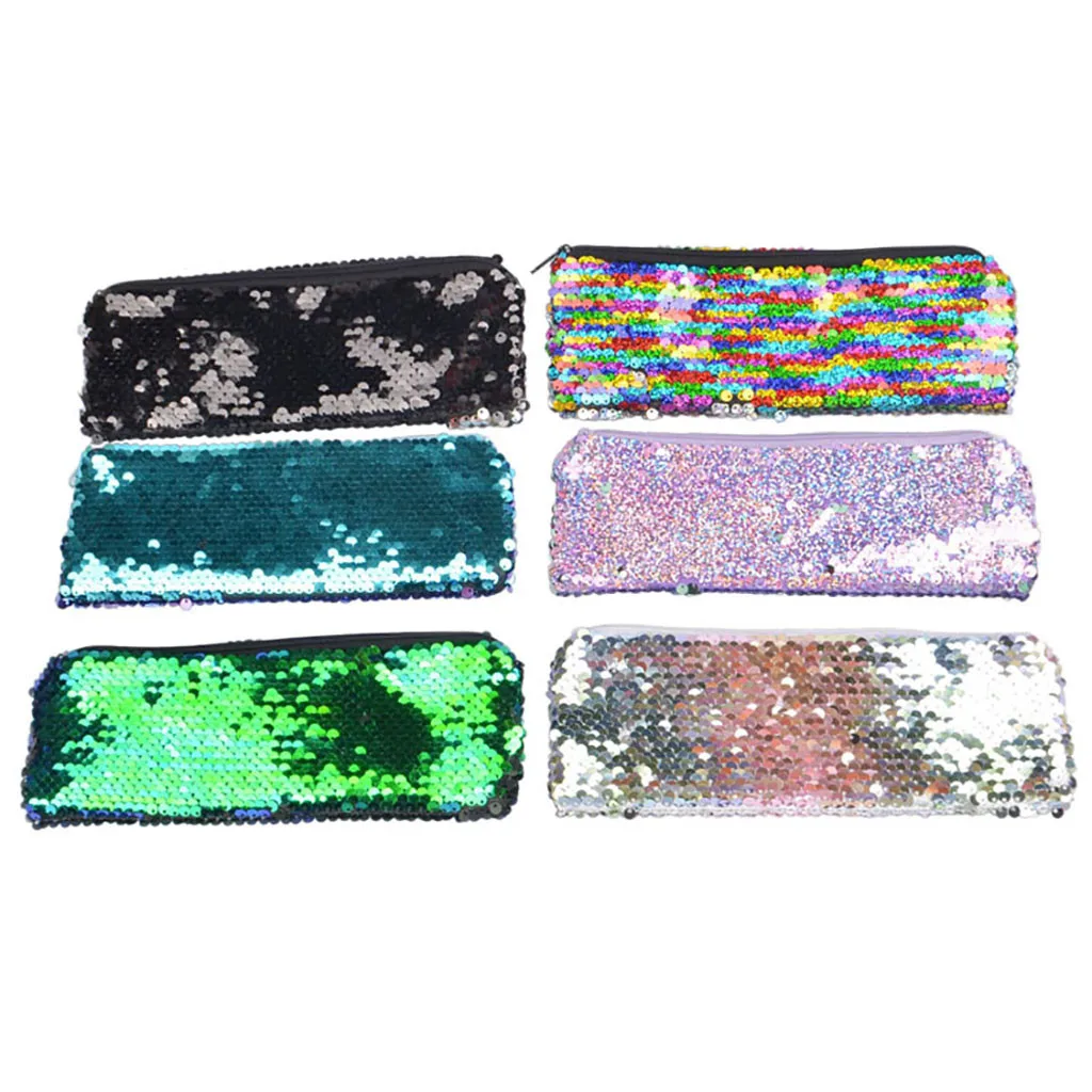 Женский модный двусторонний кошелек с пайетками для монет, чехол-карандаш, мини-сумка