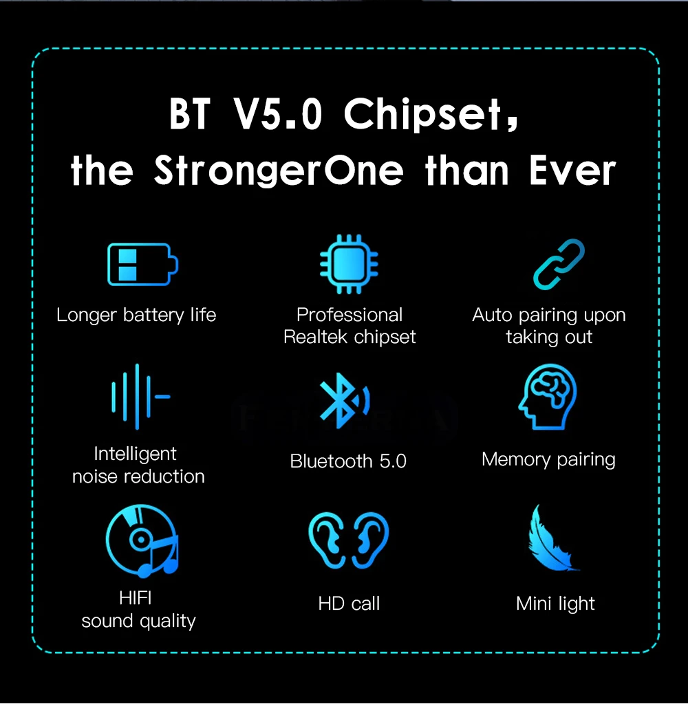 1. Версия BT 5,0: сенсорное управление отпечатком пальца, высокоскоростное стабильное непрерывное соединение, высокая мощность передачи отклика музыки, игр, фильмов, ультра-низких звонков с задержкой.