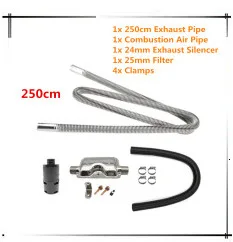 1x24 мм Глушитель1 x фильтр 25 мм1 х воздушная труба сгорания1 x выхлопная труба 300 см4 x зажимы