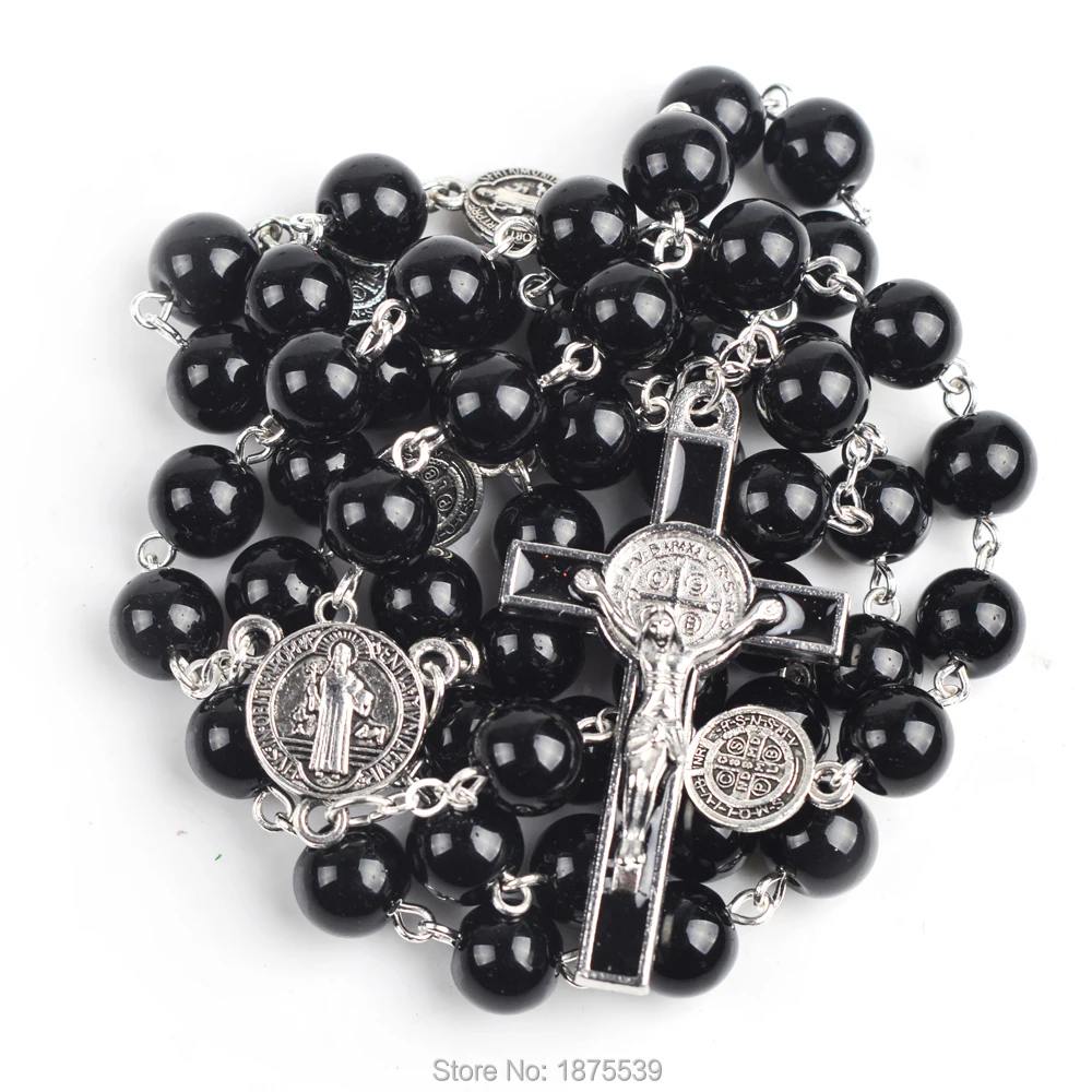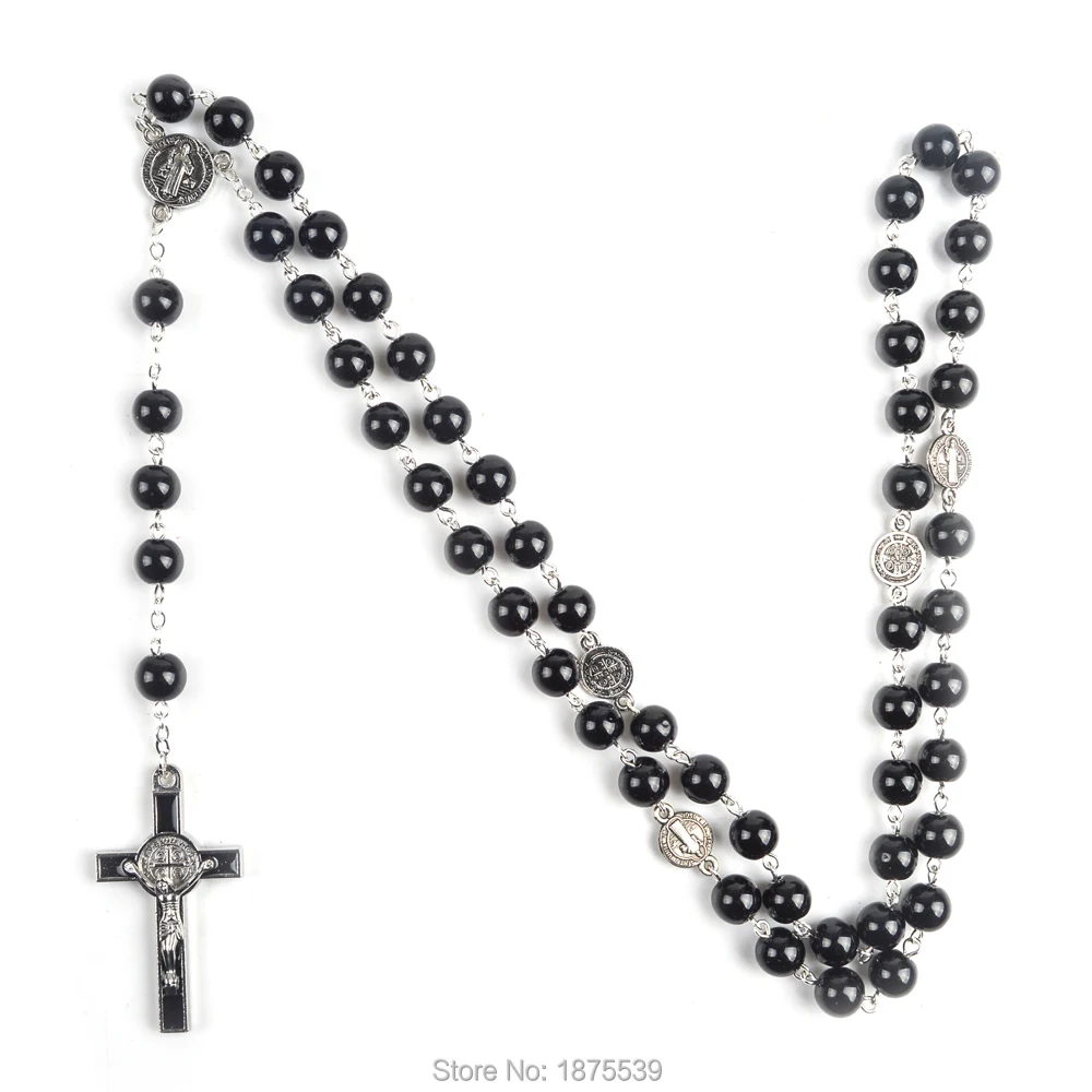 Стеклянные четки черные бусины St Бенедикт четки Chaplet христианские четки для мужчин