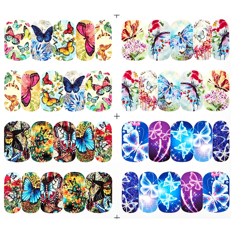 12 видов конструкций в 1 Набор полных наклеек для дизайна ногтей водные переводные наклейки для маникюра