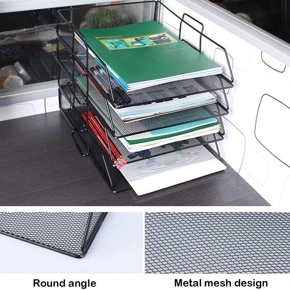 Штабелируемый Лоток для бумаг, металлический сетчатый Настольный органайзер для файлов, корзина для хранения, держатель для дома, офиса, документов, писем, книг, журналов
