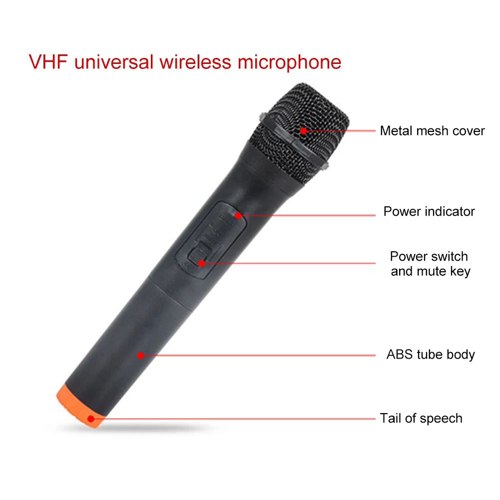 Использует технологию УВЧ, удаленная Беспроводная передача облегчает работу без раздражающих проводов, может достигать расстояния передачи 20 м. Более широкий частотный диапазон, меньше помех, показывает ваш голос легко и идеально.