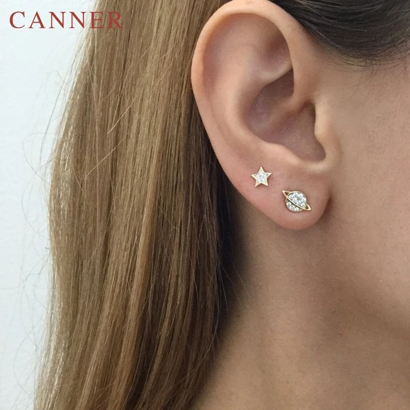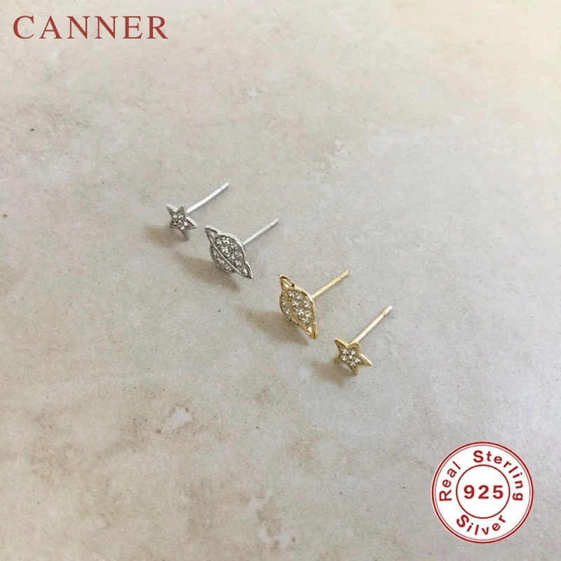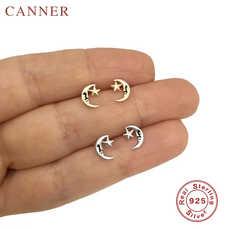 Простые серьги-гвоздики в виде звезды луны из стерлингового серебра 925 пробы с цирконием для девочек золото; Серебро; Сережки; Модные ювелирные изделия