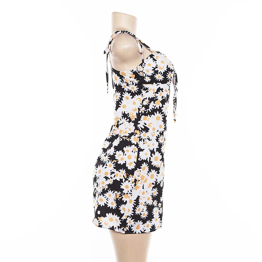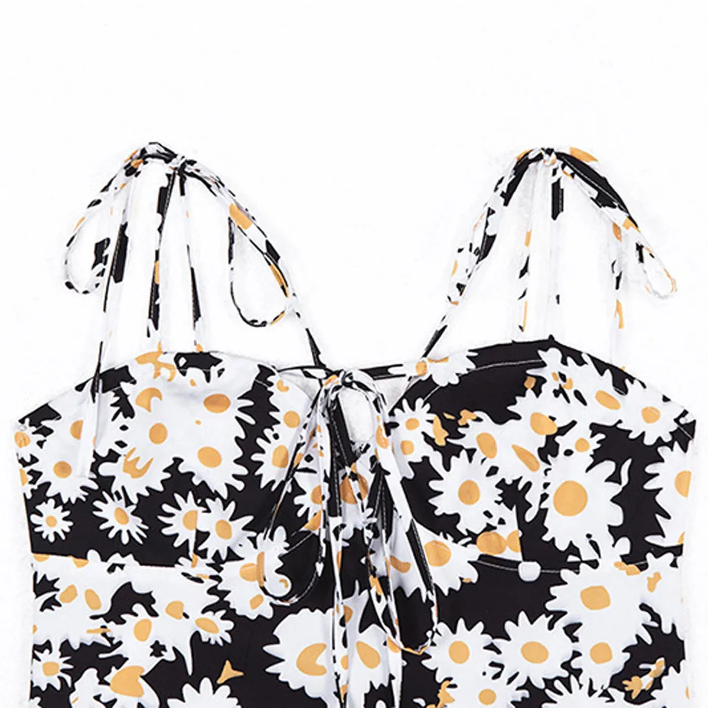 Женское летнее сексуальное платье без рукавов на бретелях, ремешок для бедер, тонкое платье с принтом