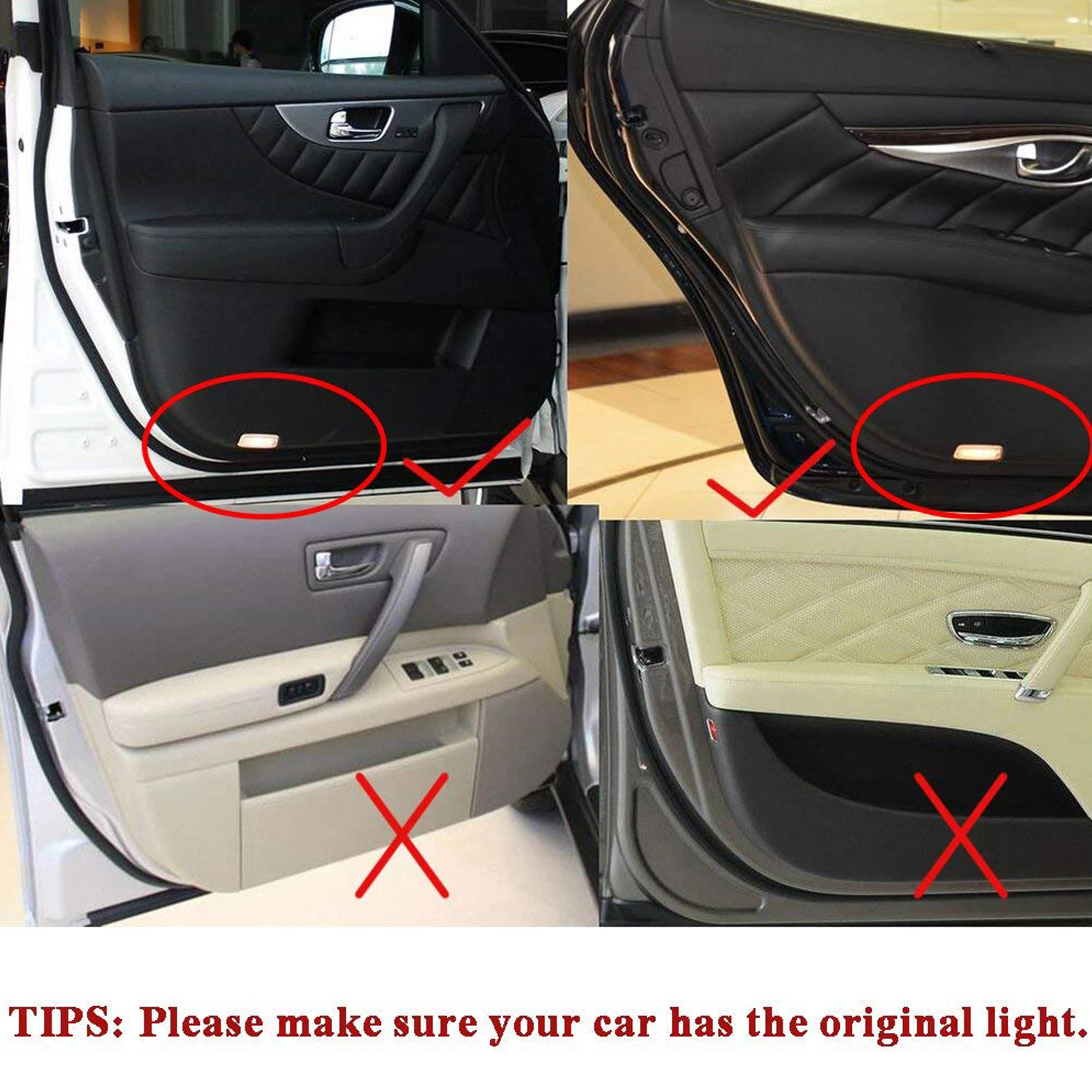 Этот список предназначен для пары удивительных дверных ступеней вежливого лазерного проектора теневые огни. Открывая дверь, вы увидите светодиодный светильник, как приветствующий вас и душевно исходящий. Эта мода популярна среди молодых и автолюбителей. Когда дверь будет закрыта, светильник будет выключен автоматически.