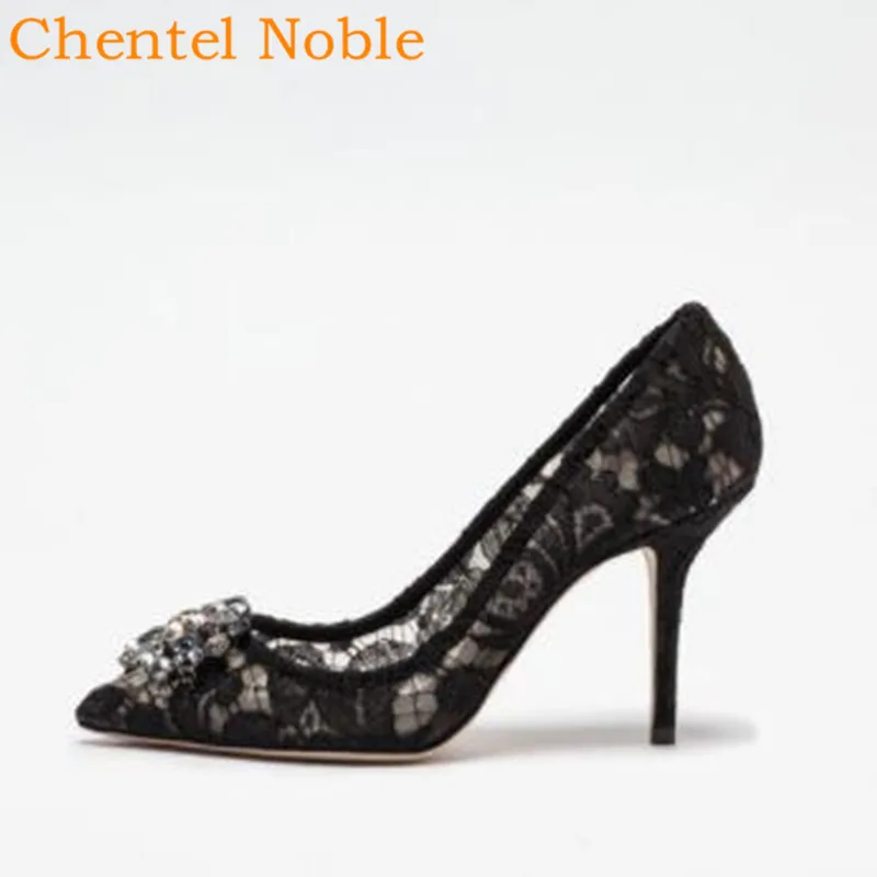 Женские свадебные туфли на высоком каблуке, украшенные кристаллами, из кружева и кожи, цвет черный, 2019