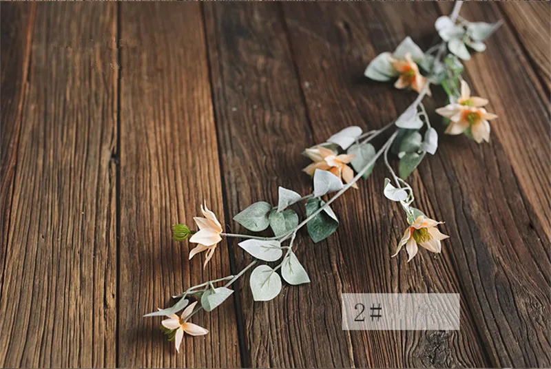 Материал: шелковая ткань + профессиональный цветочный пластик Размер: около 120 см в длину, 6 цветов на ветку Особенности: Ретро цветовая система, низкая насыщенность, хорошие фотоэффекты