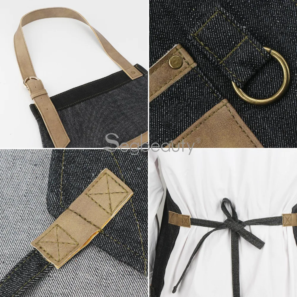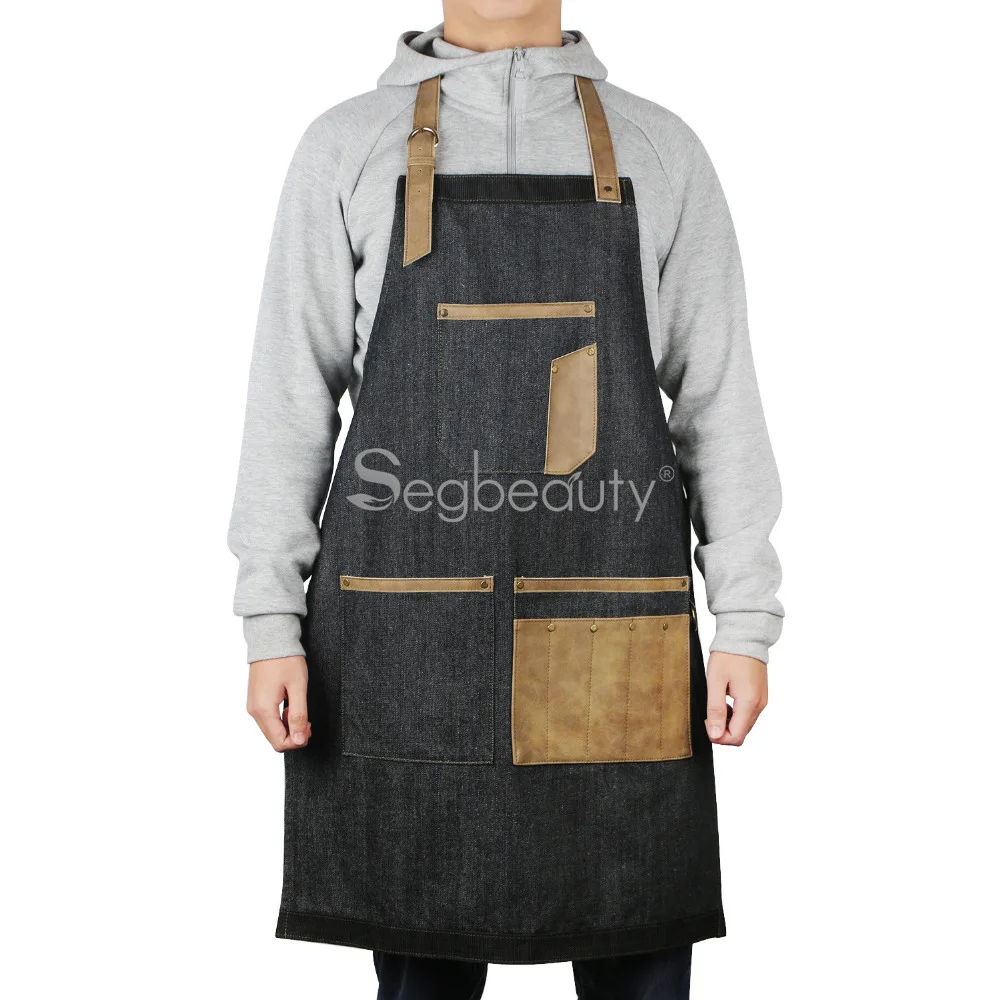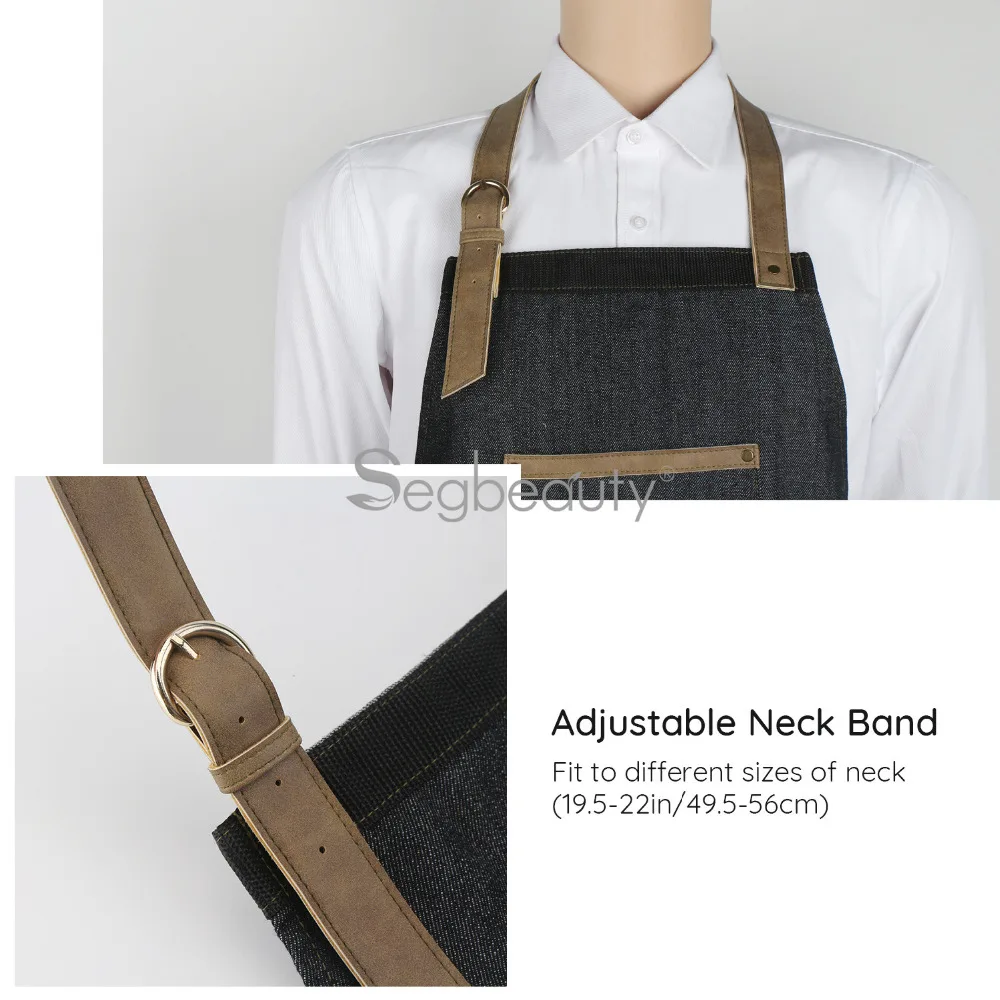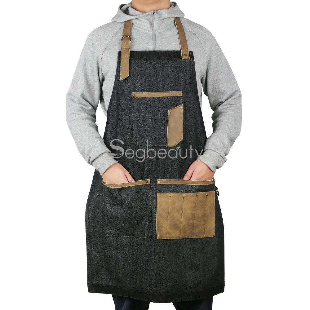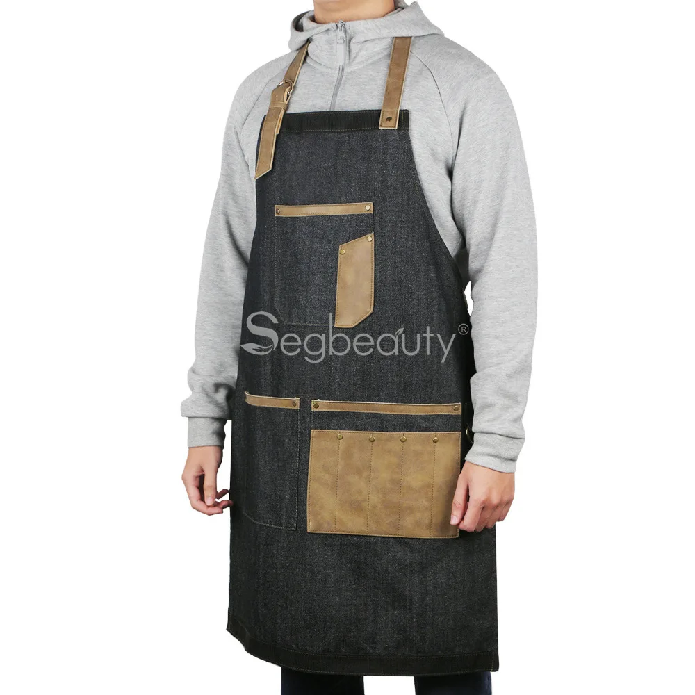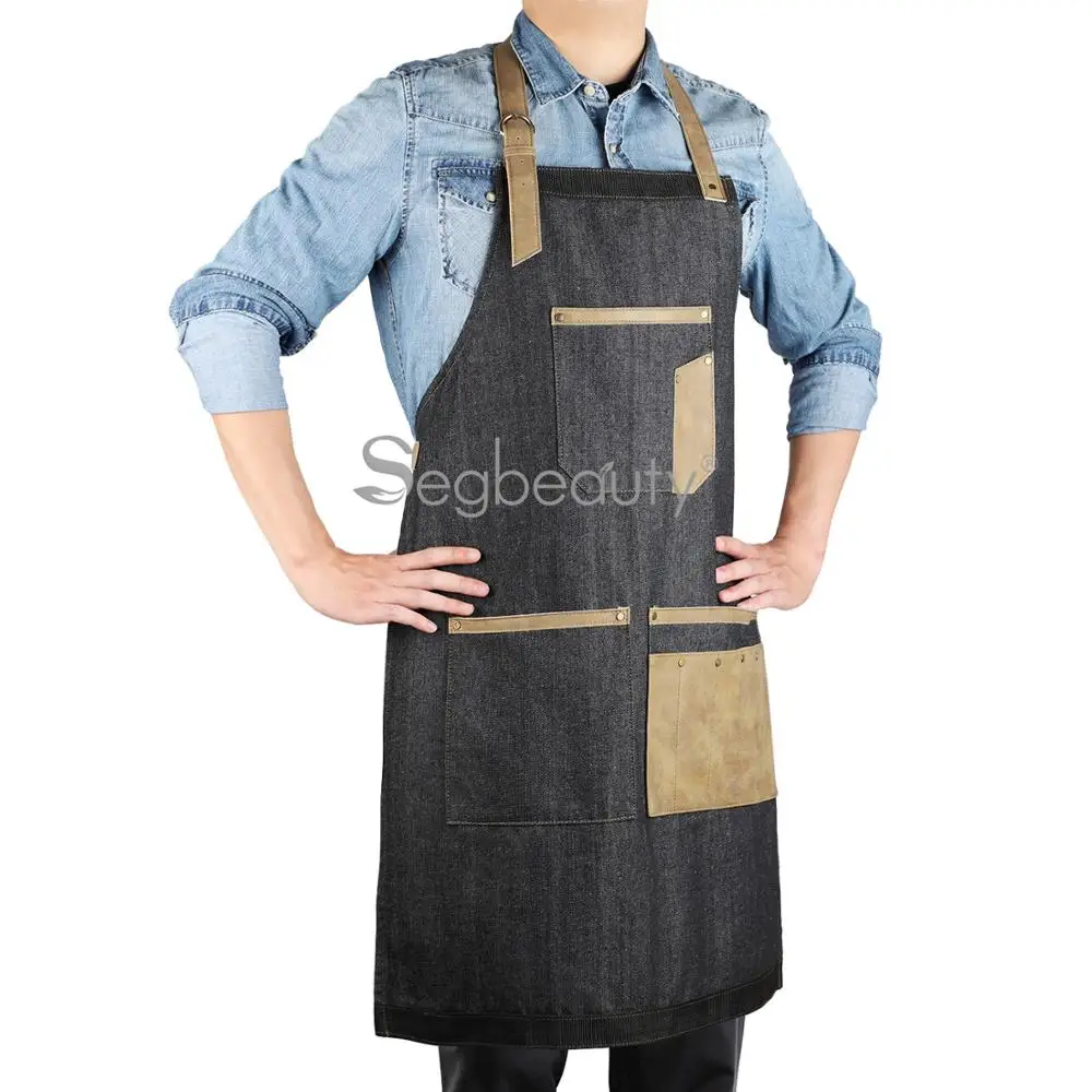 Segbeauty джинсовый кухонный фартук для салонов с регулируемым хлопковым ремнем с большими карманами 23x32 дюйма бариста парикмахер для мужчин и женщин