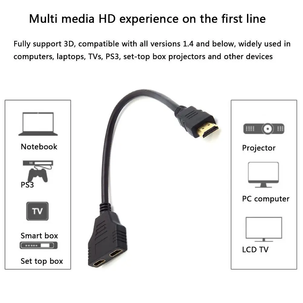 Output Video: HDMI 1.4P Vertical Frequency Range: 50-60Hz Video Amplifier Bandwidth: 2.5Gbps/250MHz Interlaced (50&60Hz) Resolution : 480i 576i 1080i Progressive (50&60Hz) Resolution : 480P 576P 720P 1080P HDMI 1 to 2 HDMI male to female splitter cable. Support 480i, 480p, 720p, 1080i, 1080p. Gold-plated connectors for better signal transfer. Allow to connect HDMI devices that have Build-in HDMI ports, Such as --1HD-DVDBlue-ray DVD --2Game Machines: For Sony Plays --3LCD TVsPlasma Display --4Rear Projection Microdisplays --5Hi-def DVD Payers ; --6A/V Receivers