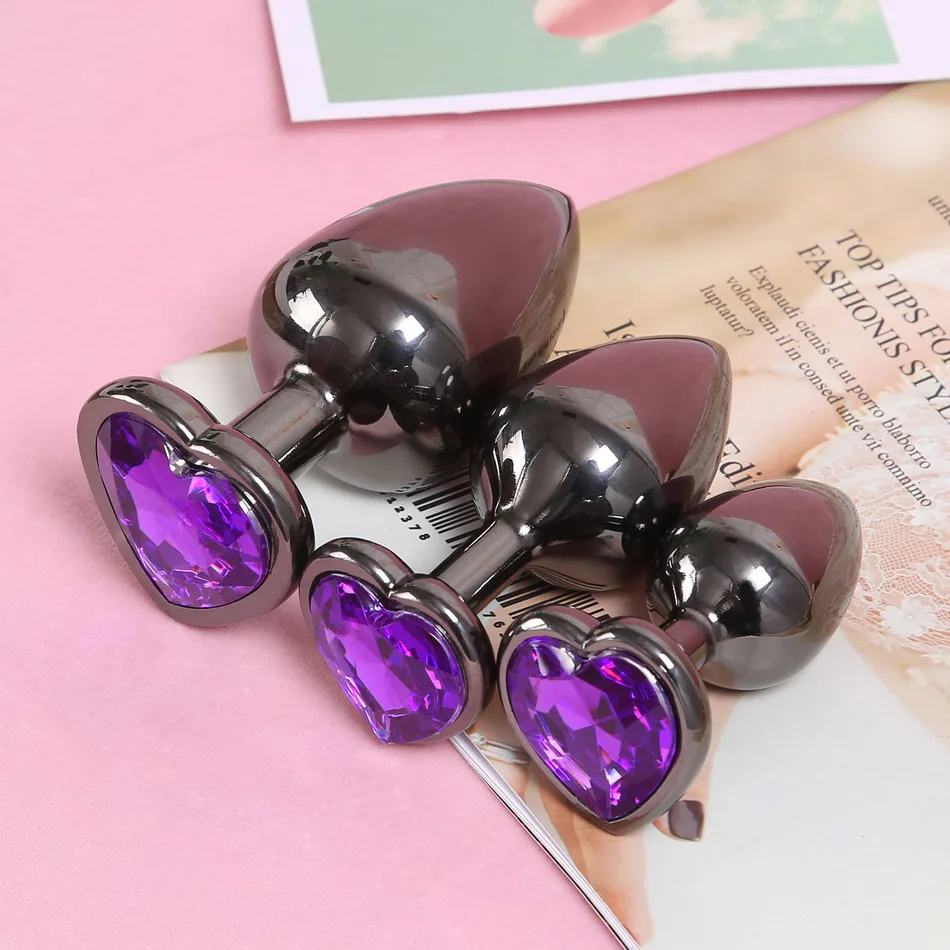 Эротический массажер металлическая Анальная Пробка красное фиолетовое сердце Хрустальная основа черная Анальная пробка фаллоимитатор с бусинами влагалище вставка мужской массажер простаты