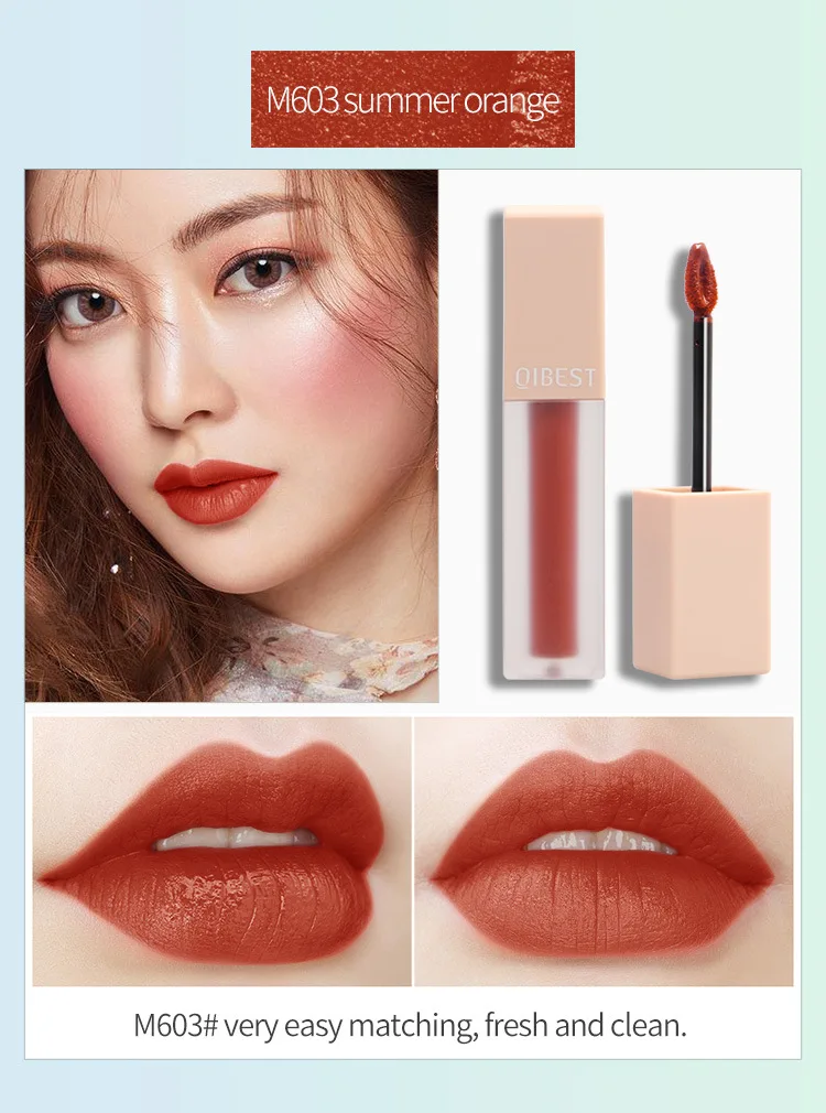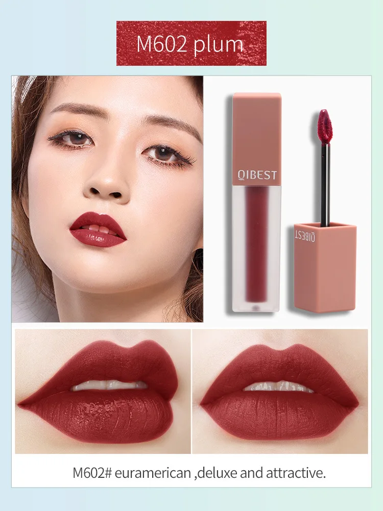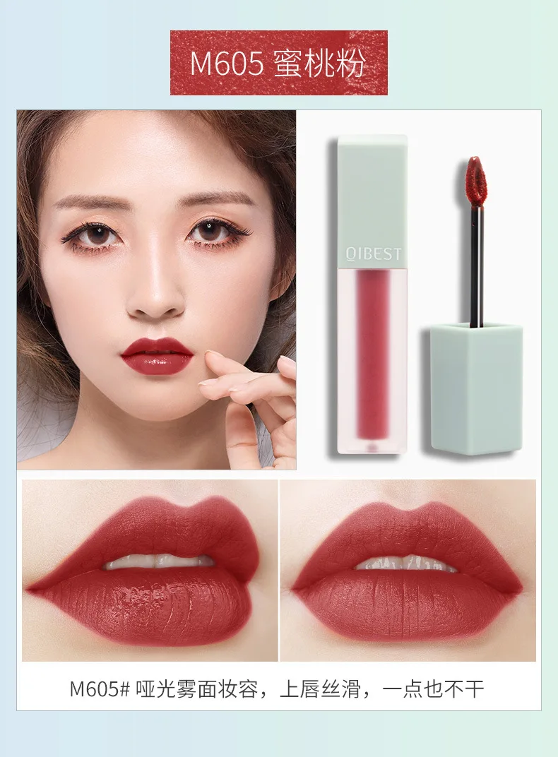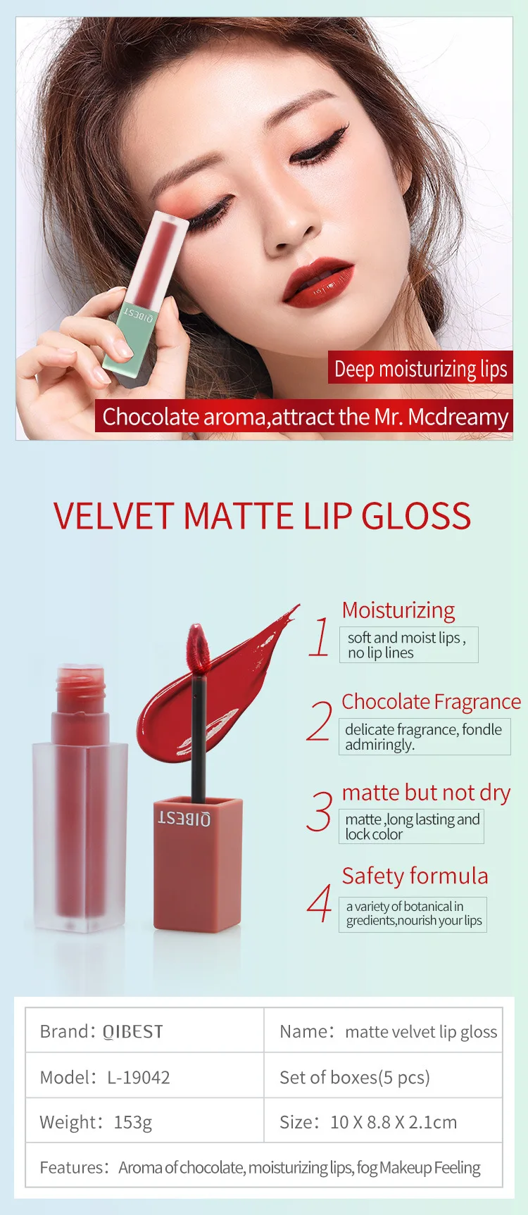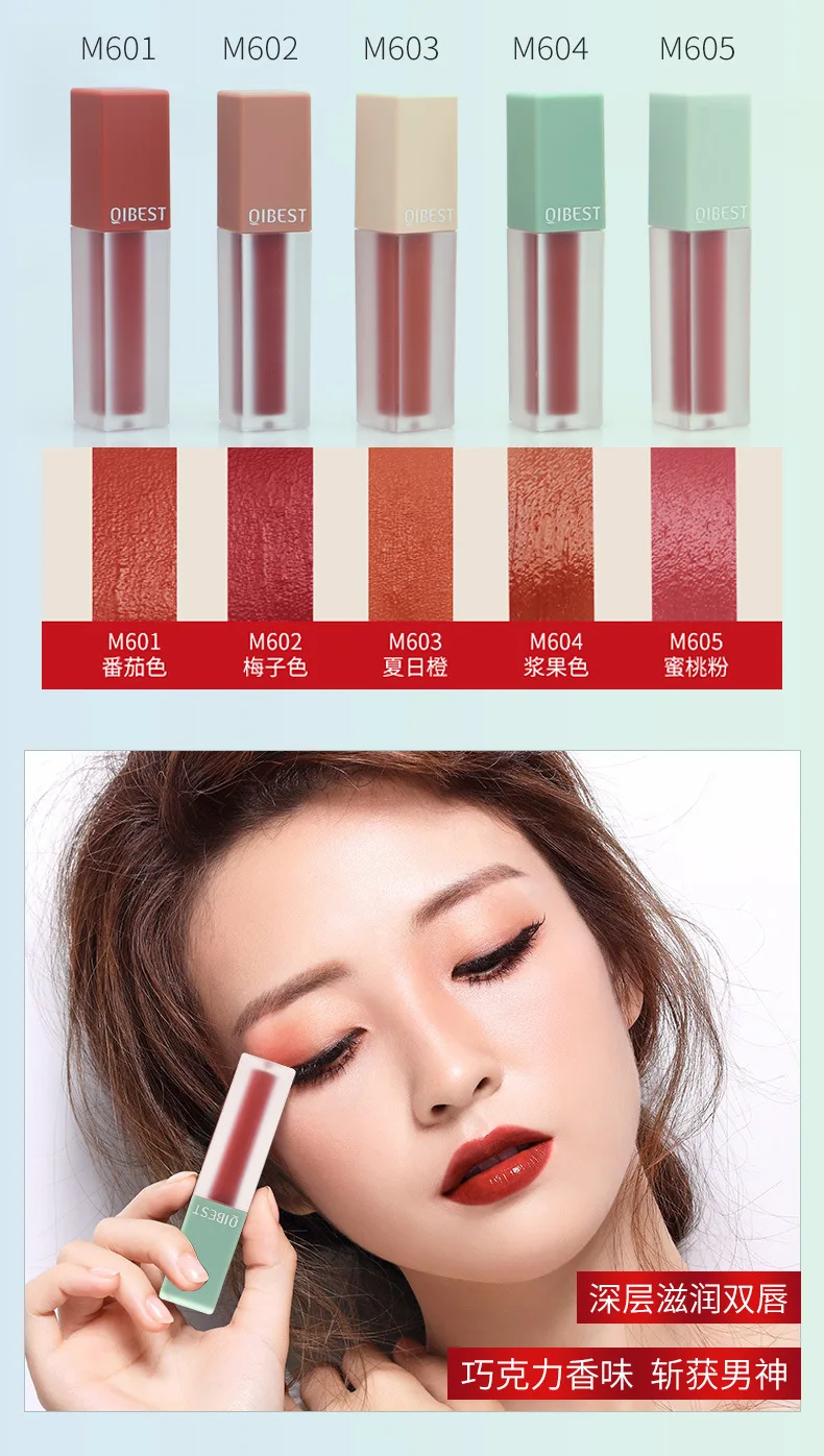 QIBEST 5 цветов матовый бархатный блеск для губ кремовая долговечная жидкая губная помада Мягкая матовая отделка губные помады шелковистая и для увлажнения губ