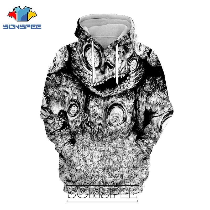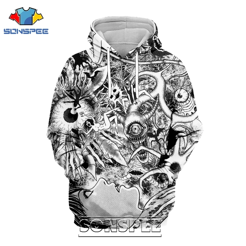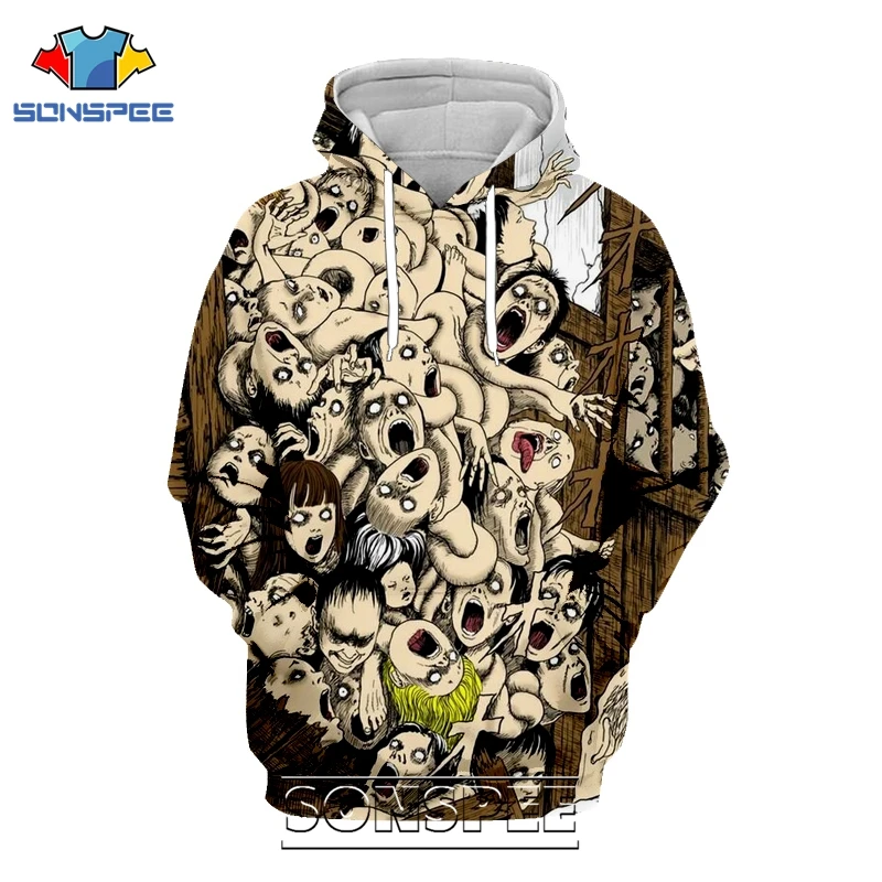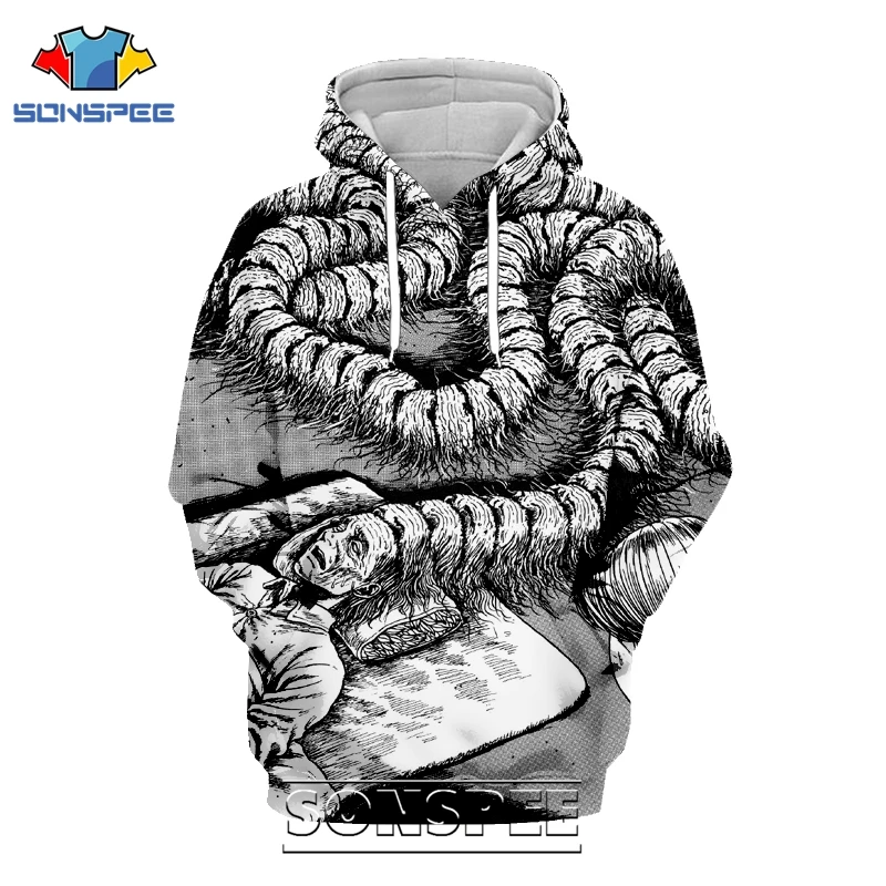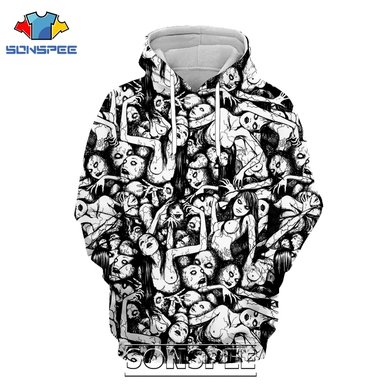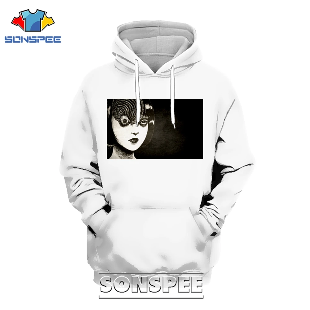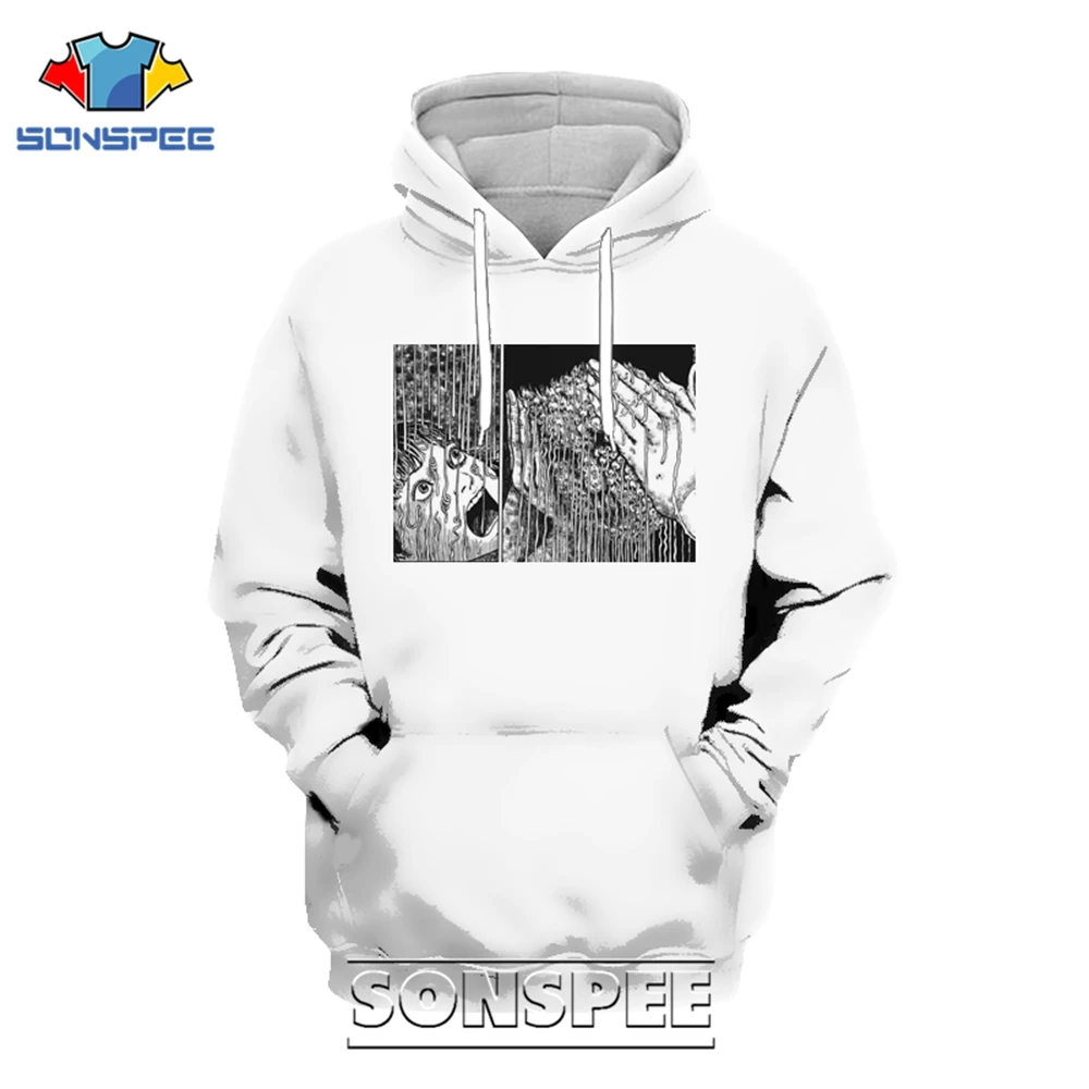 Мужская и Женская толстовка SONSPEE, Повседневная Уличная Толстовка в стиле хип-хоп с 3D принтом Junji Ito, пуловер с длинными рукавами для отдыха, толстовка с аниме «ужас»