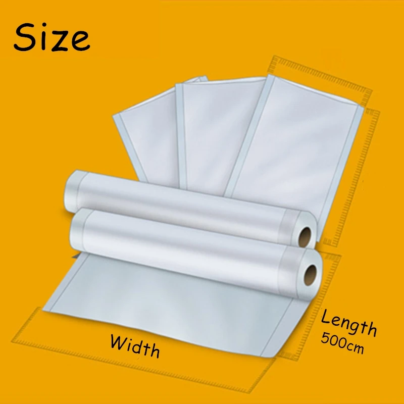 Обычно используется Размеры: 15*20 см/17*25 см/20*25 см/20*30 см/25*30 см/25*35 см Размер: 12*500 см/15*500 см/20*500 см/25*500 см/28*500 см/30*500 см Толщина: 0,18 мм Материал: пищевой полиэтилен