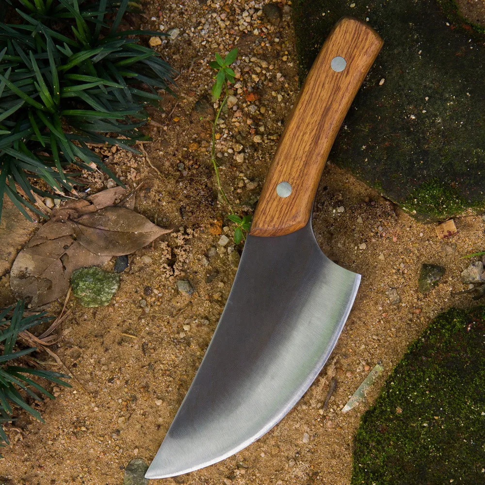 Ручной Кованый нож шеф-повара:Китайский кухонный нож изготовлен из марганцевой стали вручную, ручка и лезвие интегрированы без пайки, что является прочным и прочным для устранения сломанной ручки.