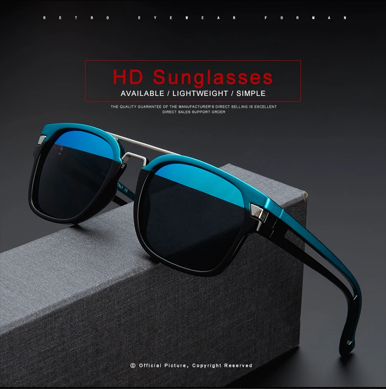 Мужские и женские поляризационные очки Glitztxunk, классические брендовые дизайнерские квадратные Черные Зеркальные Солнцезащитные очки для вождения, UV400