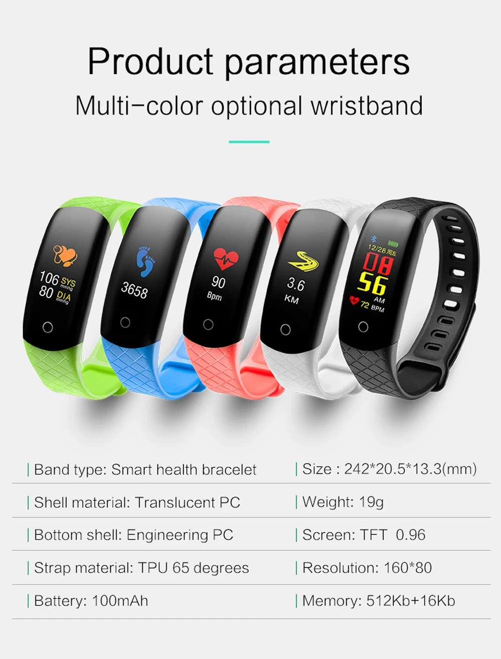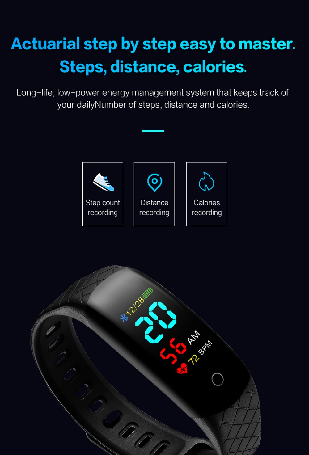 IP68 водонепроницаемый смарт-браслет монитор артериального давления часы Шагомер фитнес-трекер сообщение напоминание о звонке цветной экран браслет
