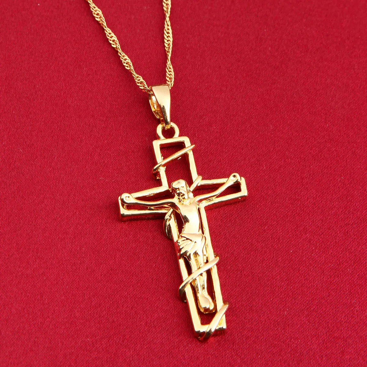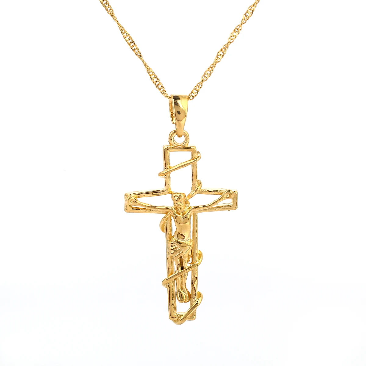 Золотой цвет крест кулон ожерелье женщин мужчин ювелирные изделия трендовые инри Крест Иисуса Христа Ювелирные изделия