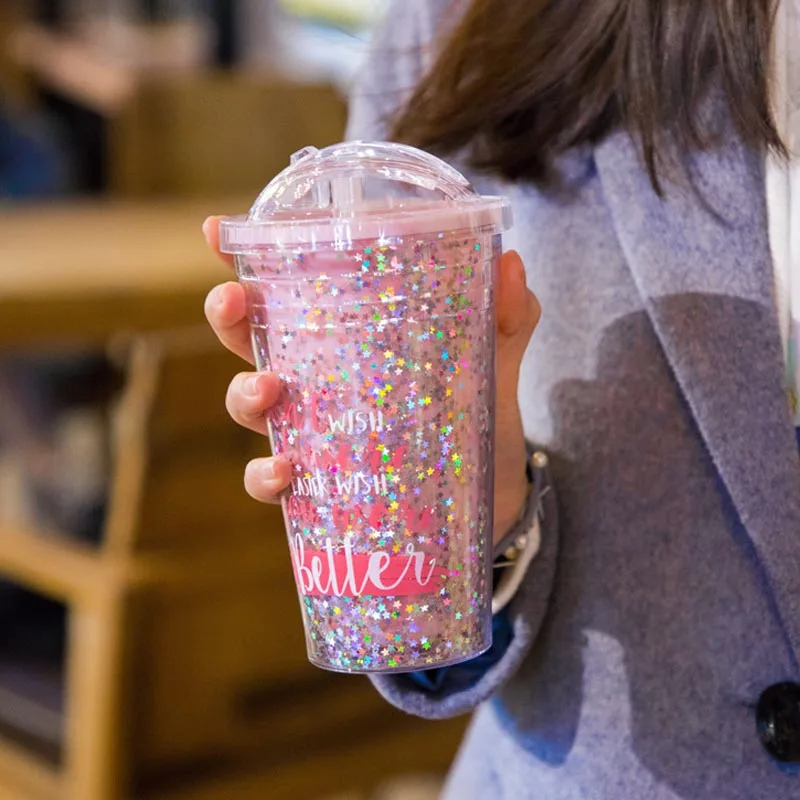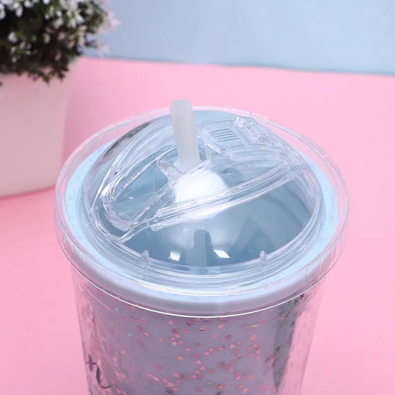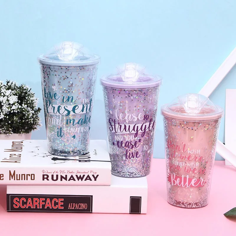 Модная креативная портативная кружка для путешествий объемом 420 мл с двойным пластиковым звездным сияющим дизайном, кофейная бутылка для воды, подарок