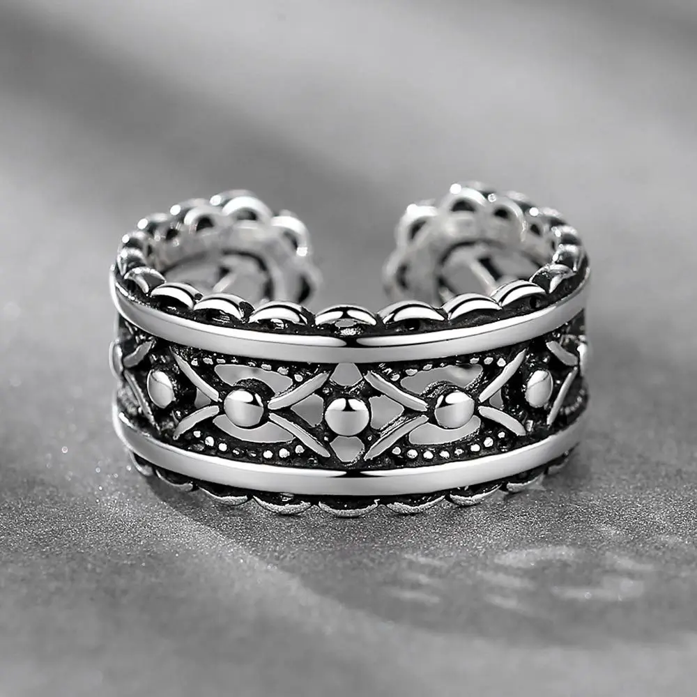 Креативные винтажные полые кольца из стерлингового серебра 925 пробы для женщин ювелирные изделия Ретро регулируемое тайское серебряное кольцо на палец для вечеринки Подарки Размер: Регулируемый Материал: серебро 925 пробы Состояние: 100% новый бренд Повод: Свадьба/помолвка/Юбилей/вечерние