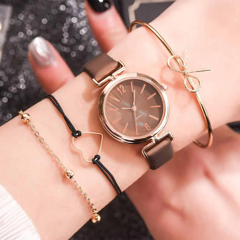 Роскошные плетеные кожаные часы-браслет женские модные элегантные кварцевые
