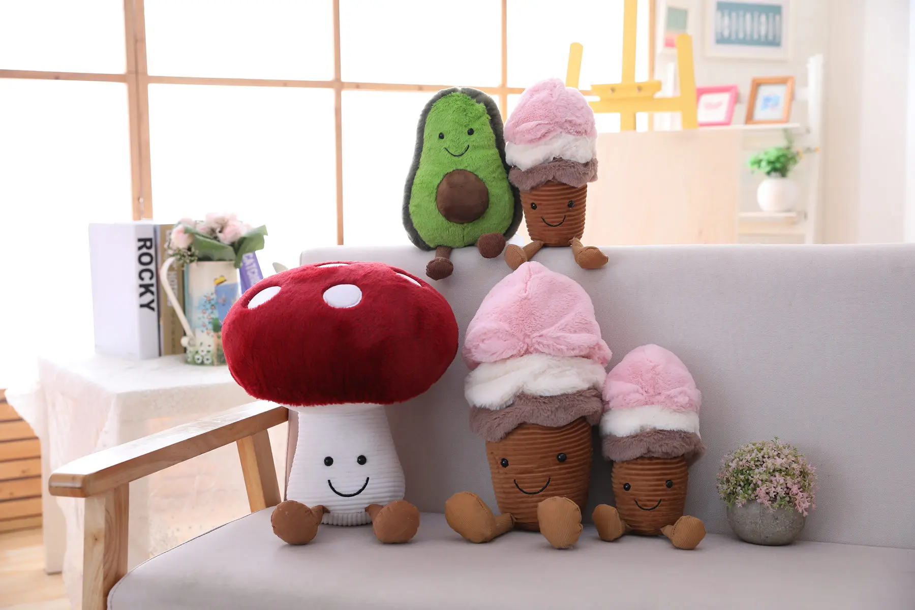 20-40cm Cute Avocado Mushroom Ice Cream Plush Toy Kawaii Cartoon Fruits Vegetables Soft Comfortable Doll Toys For Girls Boys