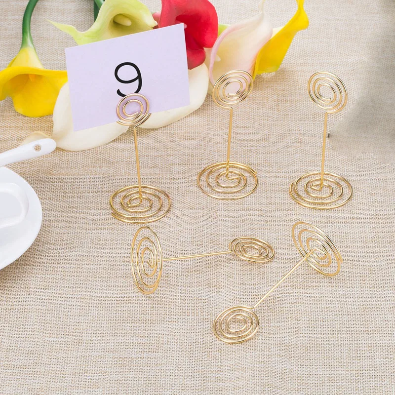 Держатель для номера свадебного стола: красивый держатель для фотографий с круглыми зажимами и спиральным основанием, блестящий золотой цвет и красивая форма хороши, как настольный декор