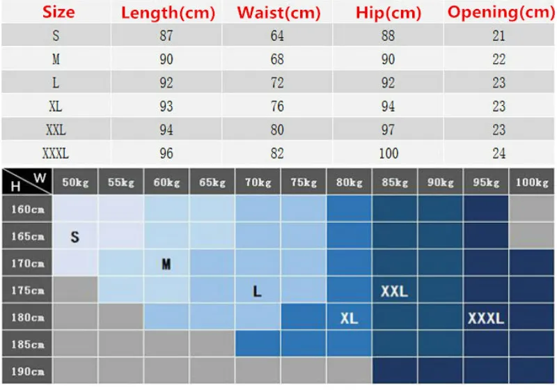 Описание размера брюк (Азиатский размер) (допускается погрешность в 1-3 см) | |||||||||