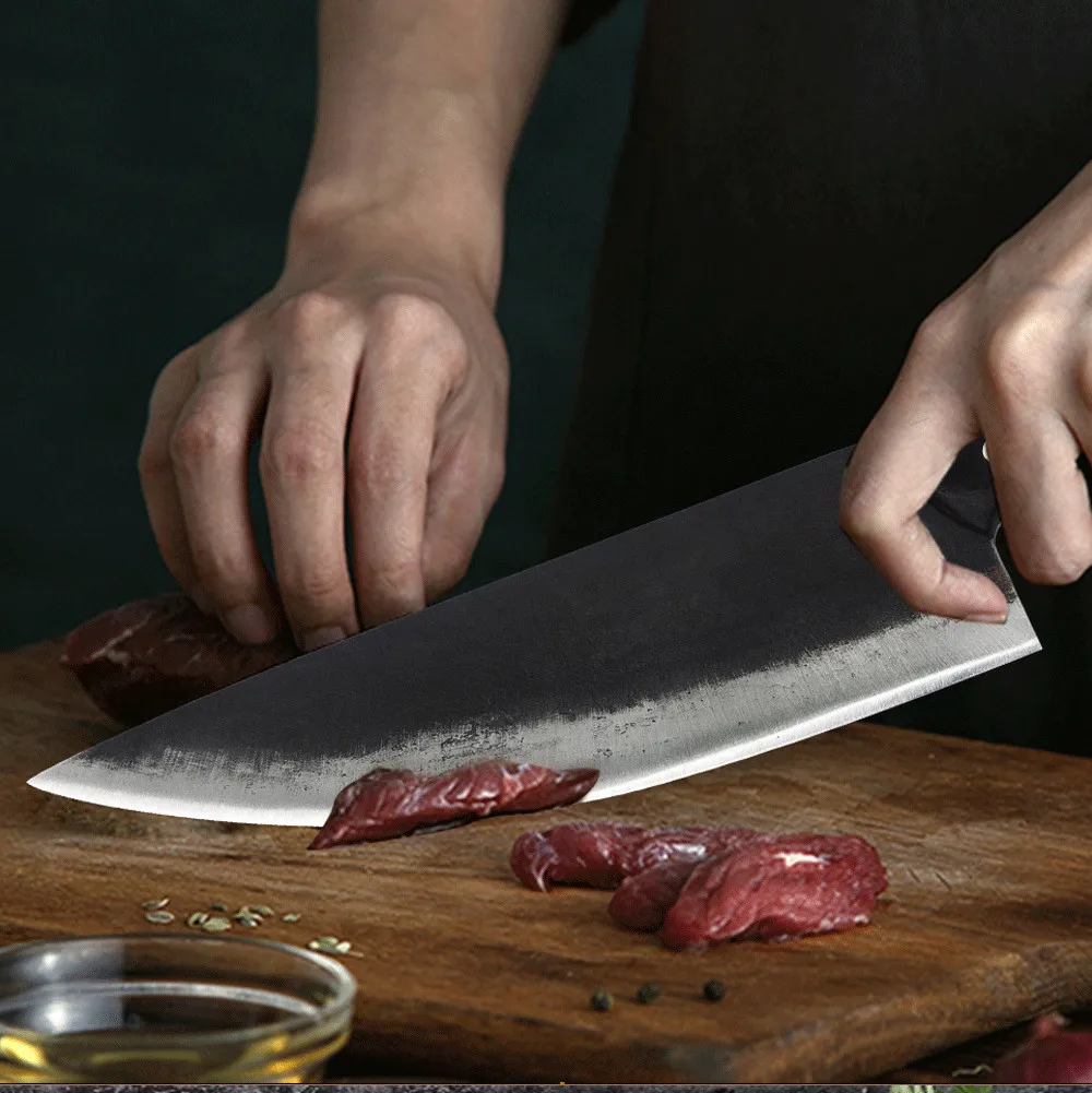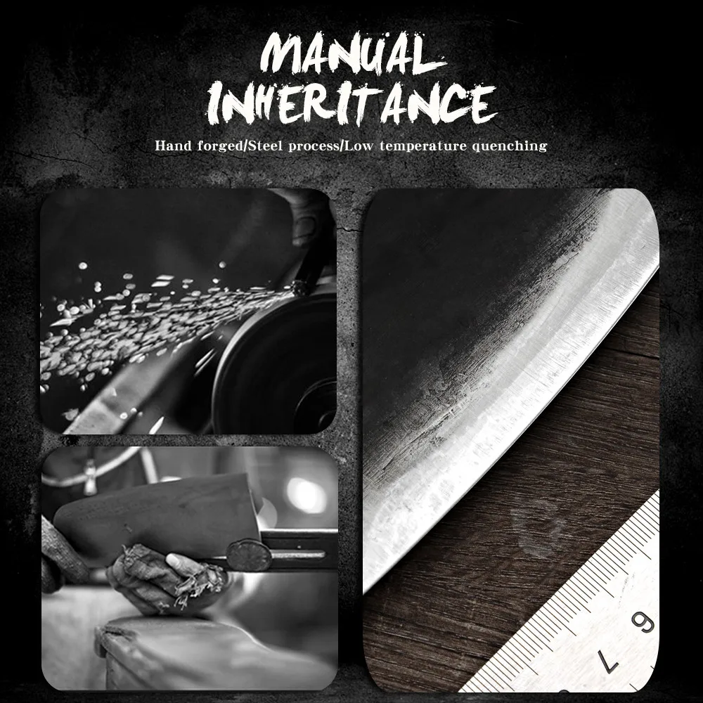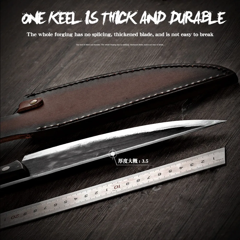 Материал лезвия: кованая Высокоуглеродистая сталь ручной работы Ручка: полностью интегрированный Стальной хвостовик + дерево + заклепки Закалка всплеск: 780 градусов Температура: 180 градусов-200 градусов Производственный процесс: в закалки-закалки молота-закалки-зажима стали-молота-закалки и других операций непрерывного цикла.