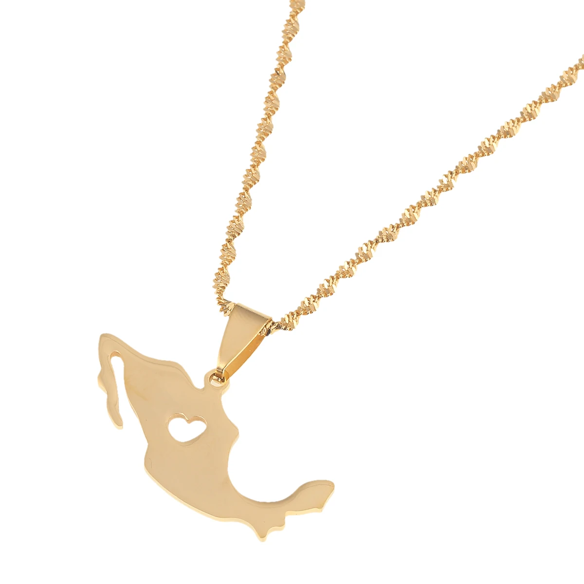 Трендовое ожерелье из нержавеющей стали с изображением мексиканской карты золотого цвета, ювелирные изделия с изображением сердца