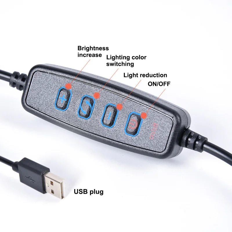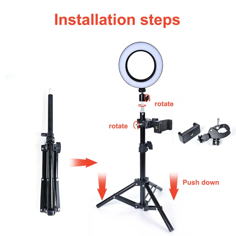 Характеристика Многофункциональное использование; может использоваться в качестве кольцевой лампы и настольной лампы или одной лампы.360 градусов регулируется: легко вращается шаровая Головка, чтобы удовлетворить освещение различных углов съемки.Трехцветное и 10-уровневое затемнение может эффективно удовлетворить различные потребности в освещенииОн широко применяется для фотосъемки, наполнения света в помещении и т. д.Фотографии товара