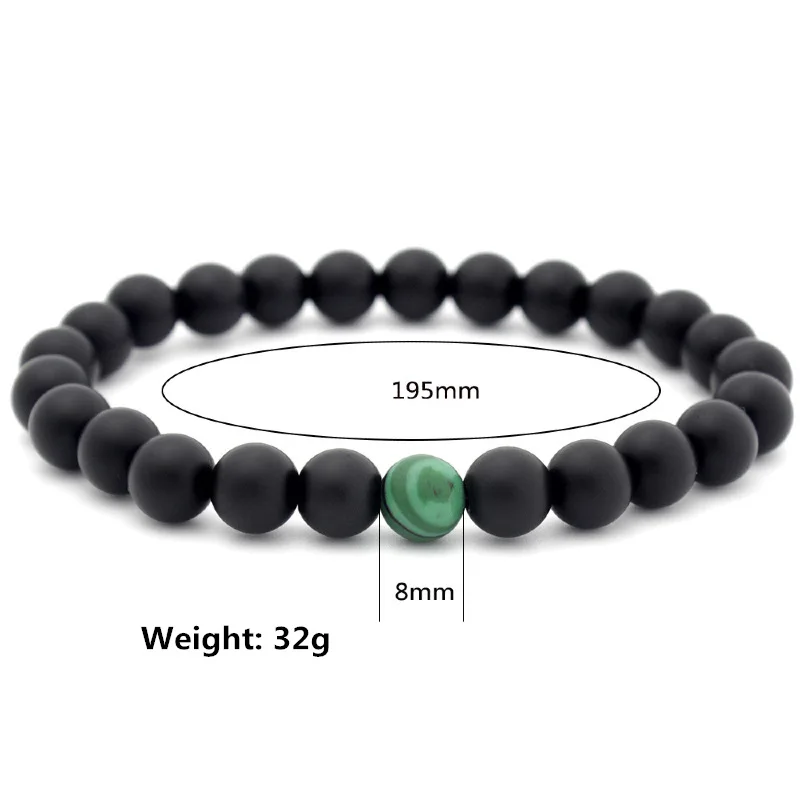 Основной камень:Черный матовый, малахитовые каменные бусы