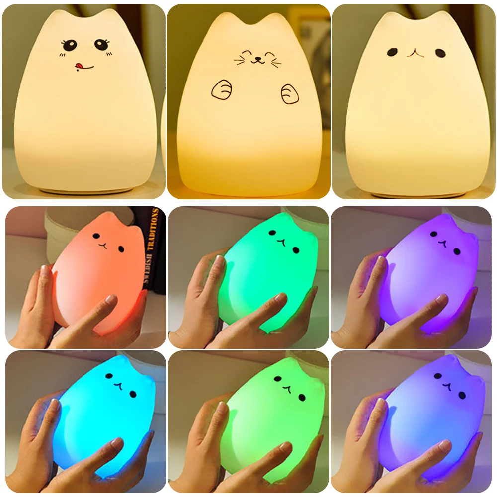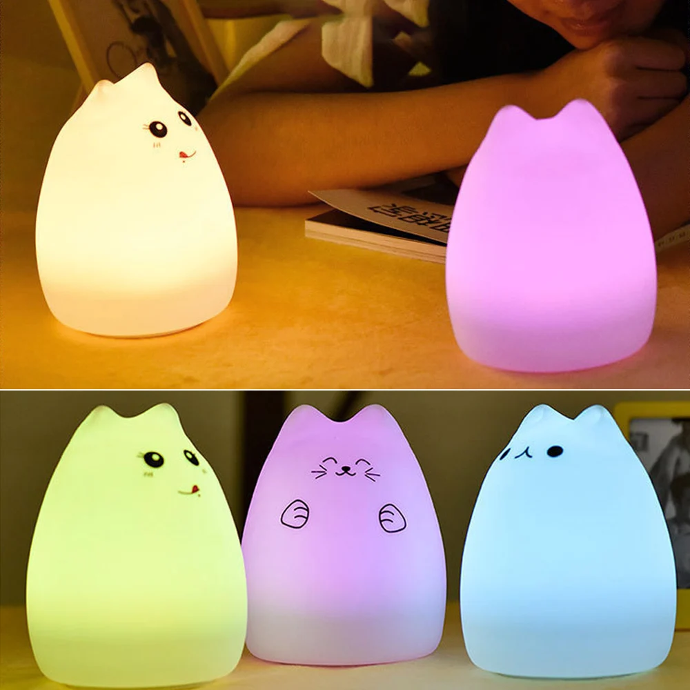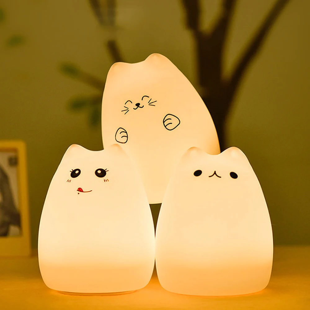 Милая форма кота, цветная силиконовая лампа, это хороший подарок для друга