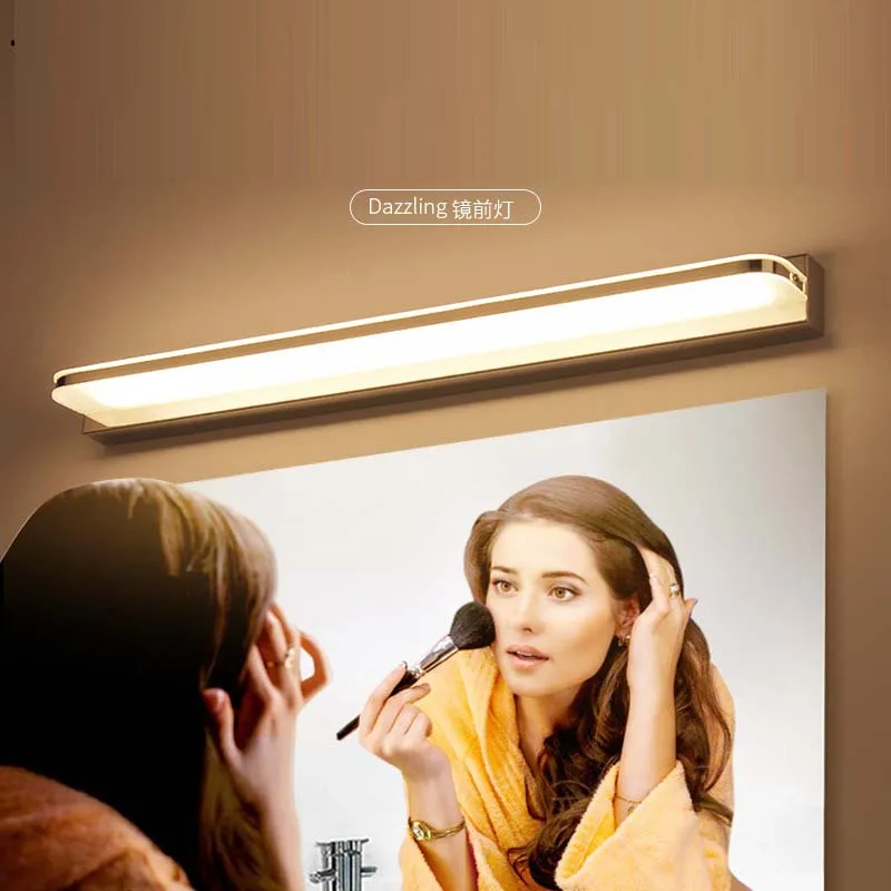 Параметры: Рабочая Напряжение AC 110/220V (по всему миру б/у) Источник освещения: светодиодный Материал: нержавеющая сталь + акриловое волокно Излучающий цвет: теплый белый, белый Переключатель включает в себя: нет Регулировка яркости: нет Применение: спальня, фойе, столовая, ванная комната для учебы Посылка: 1 шт., светильник для зеркала