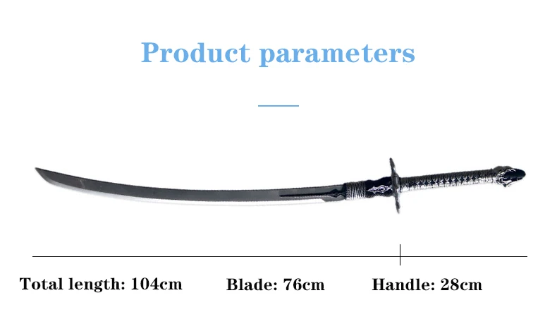 Размер продукта:Общая длина: 104 см лезвие: 76 см Ручка: 28 см