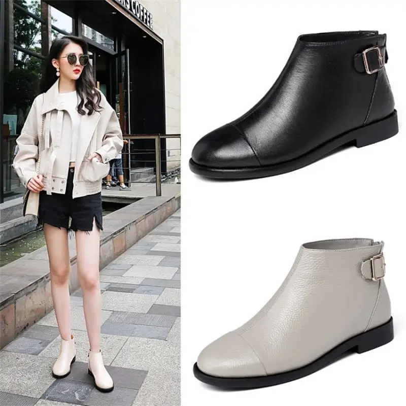 Женские ботинки; Новые кожаные ботинки Martin; Простая и универсальная женская обувь с высоким берцем на плоской подошве; Удобная женская обувь;