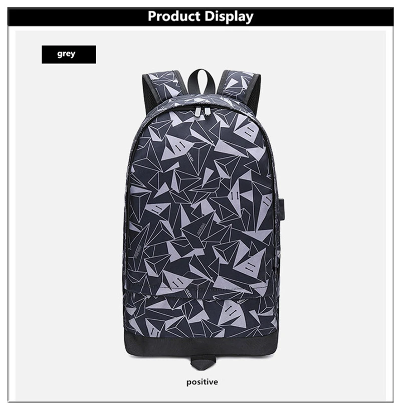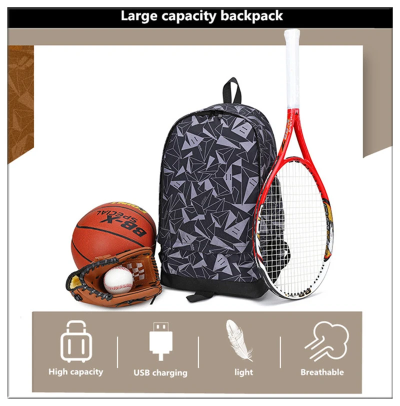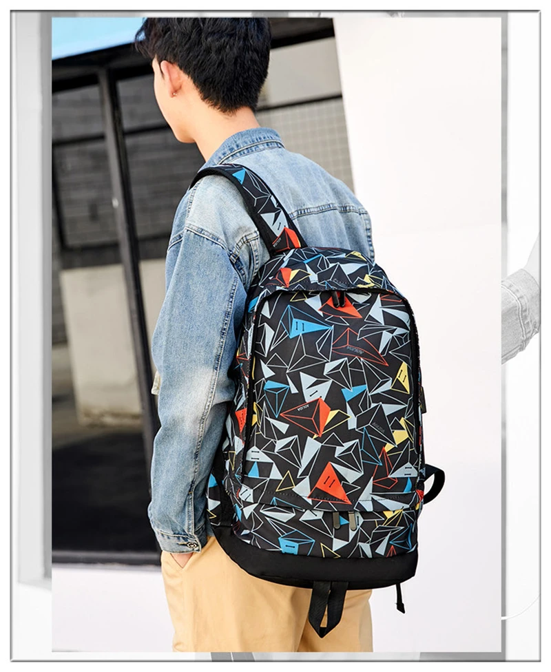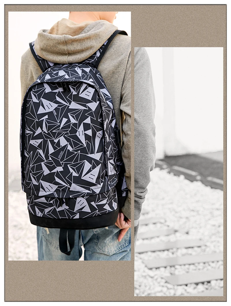 Модный спортивный мужской рюкзак для ноутбука с треугольным геометрическим узором, для пеших прогулок, школьные сумки для мальчиков, водонепроницаемая большая Вместительная дорожная сумка
